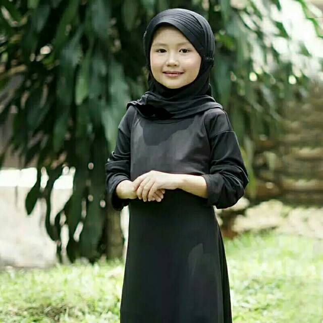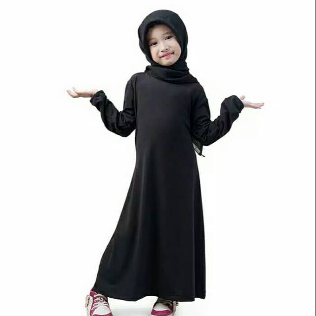 Gamis Polos Jersey Usia 3-10 th - Hitam