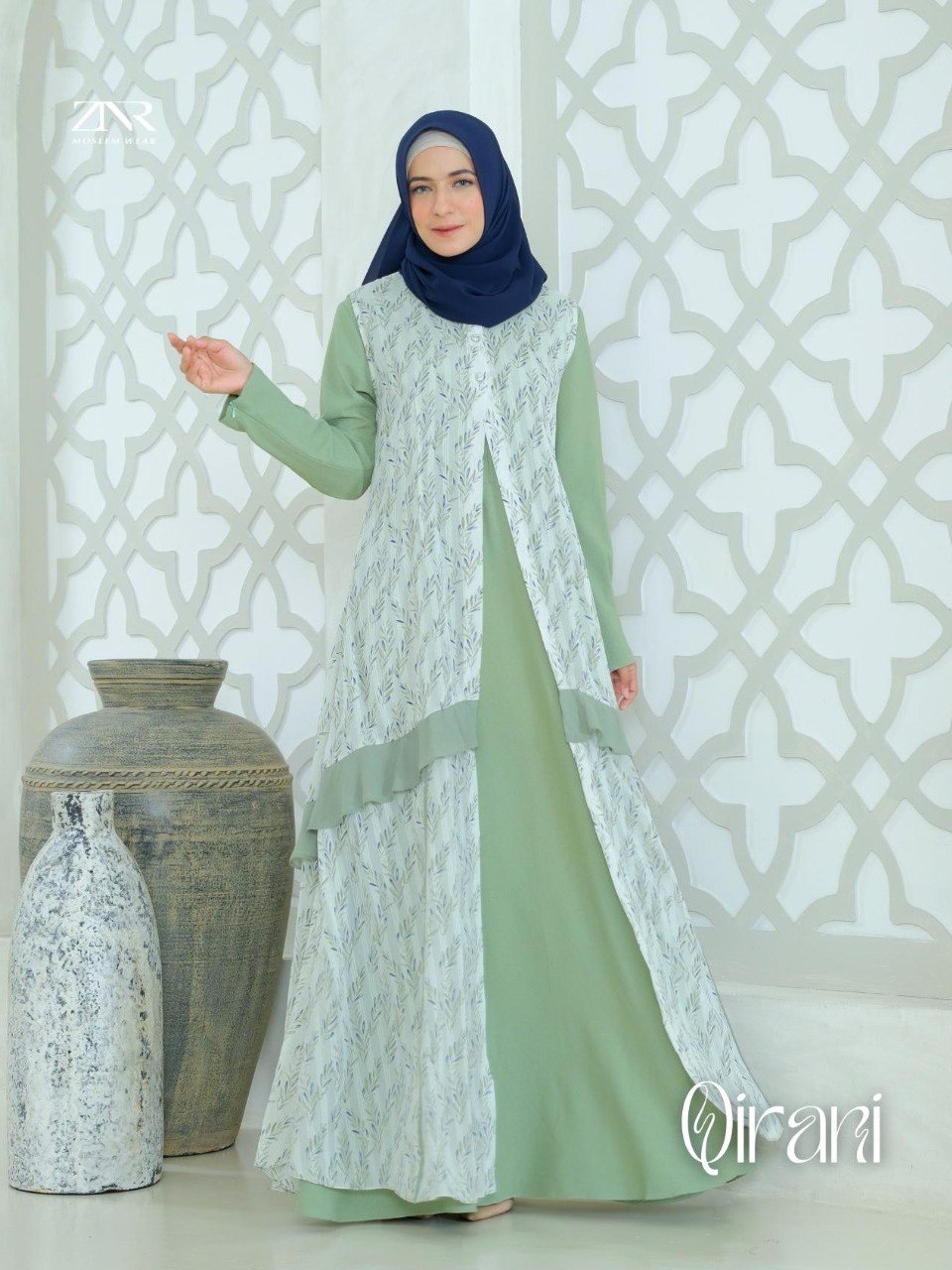 Gamis Wanita Terbaru Lebaran Baju Gamis Wanita Premium dengan Outer Baju Muslim Dress Wanita Kekinian Qirani Series by ZNR Muslimah