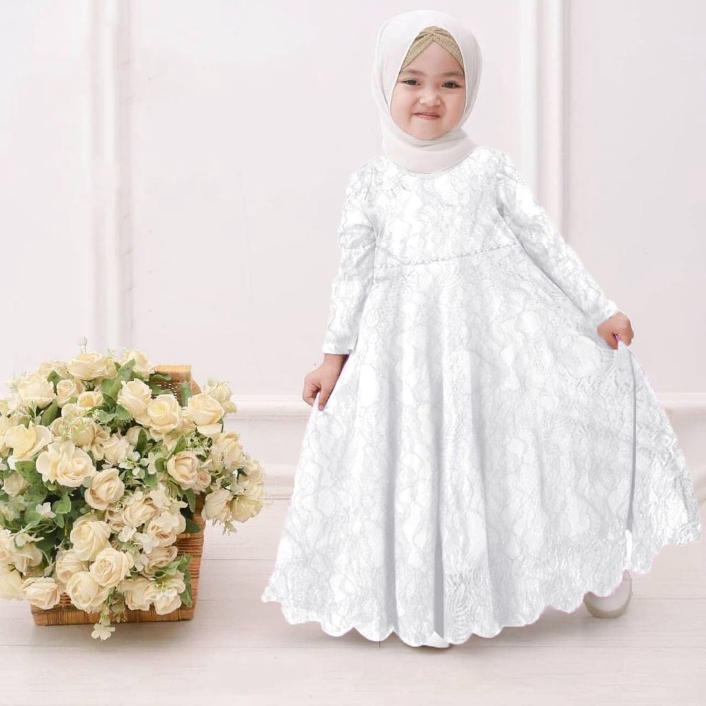Gamis anak perempuan Jessy 3-11tahun / gamis anak / baju muslim anak perempuan / gamis anak warna putih / gamis putih anak perempuan / gamis putih anak / baju gamis anak perempuan / gamis brokat anak perempuan / gamis pesta anak perempuan
