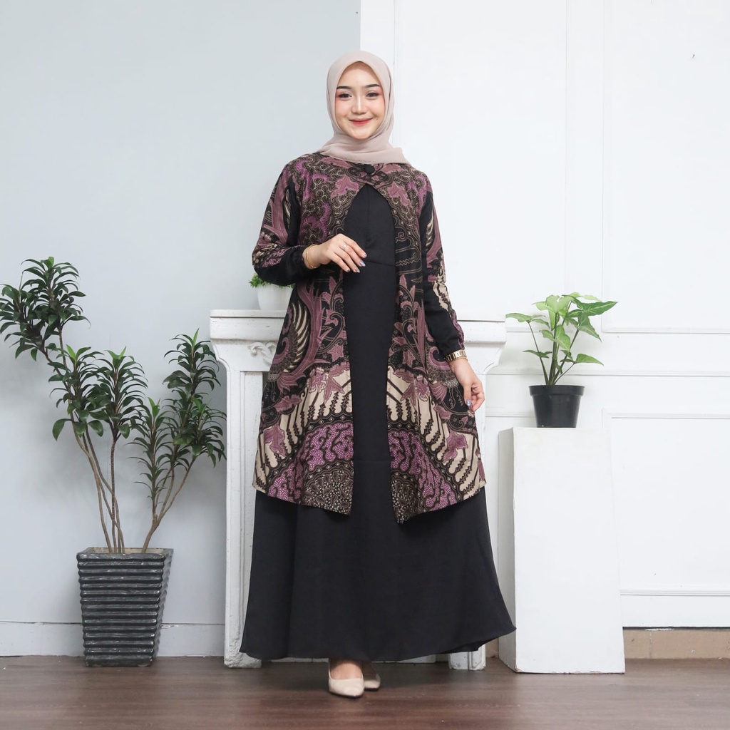 Gamis batik Motif kraton, Dress Muslim, Gamis batik kombinasi, Gamis batik modern premium