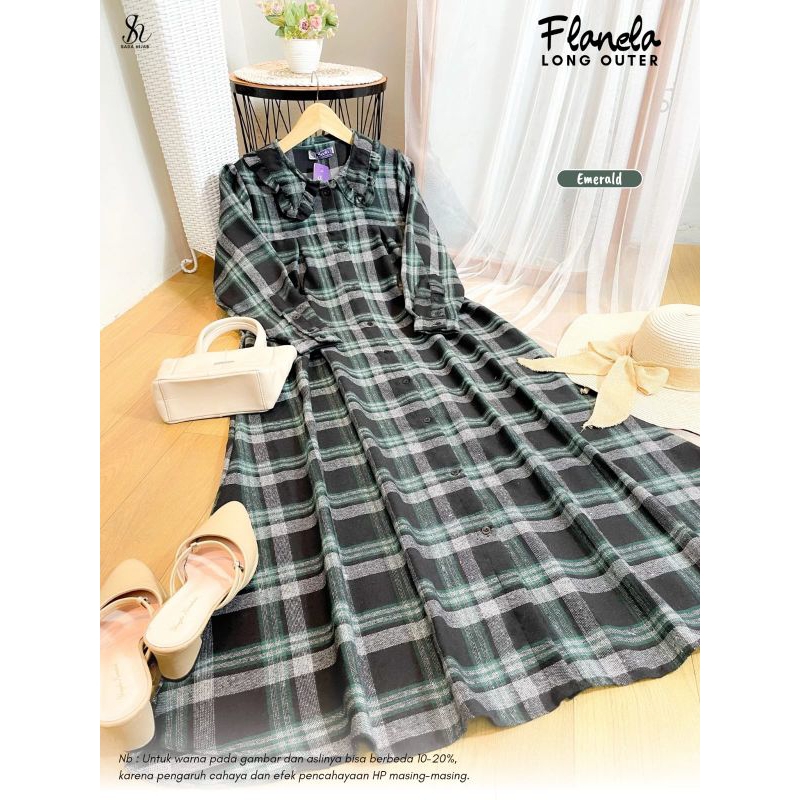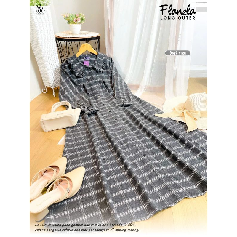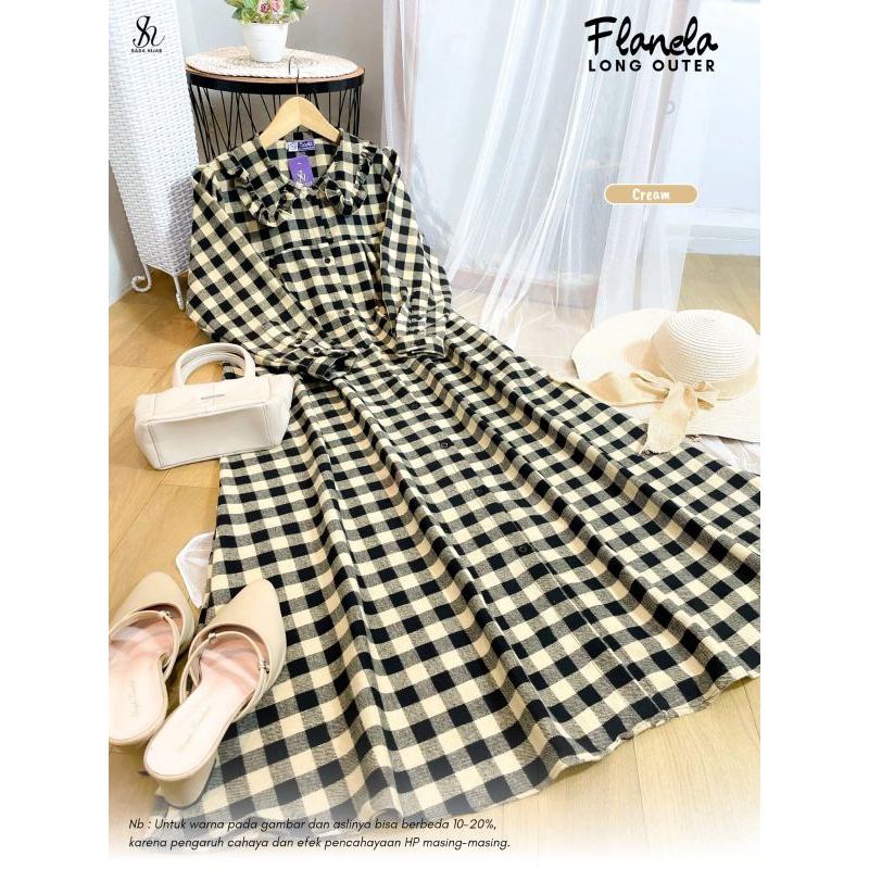 Gamis outer 2 in 1 / Gamis Flanel / Dress kotak-kotak / Gamis kuliah / gamis katun flanel premium