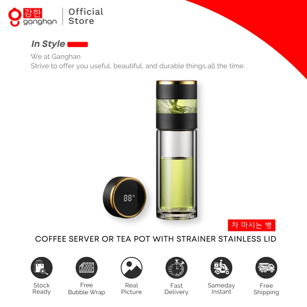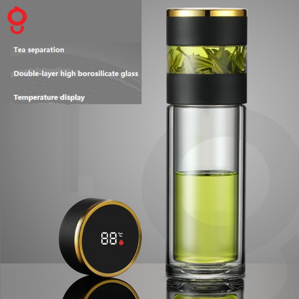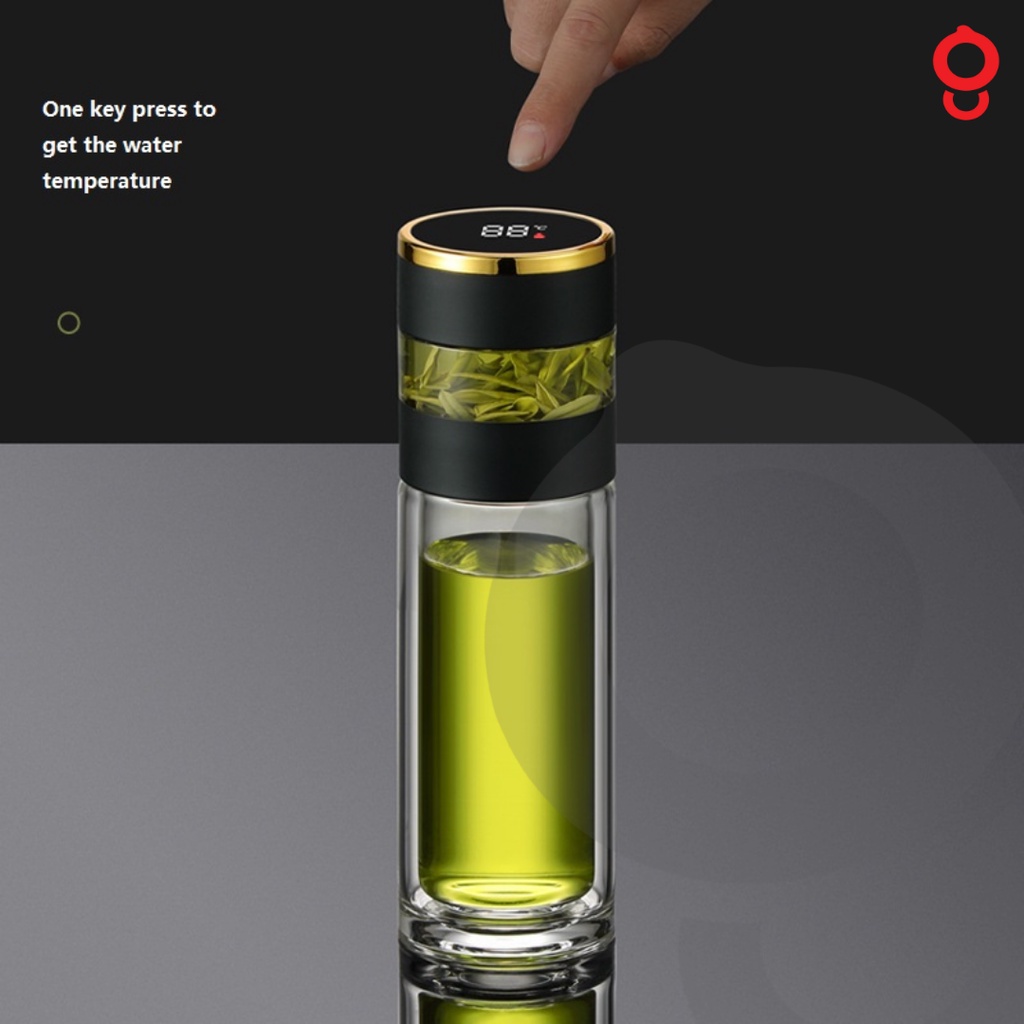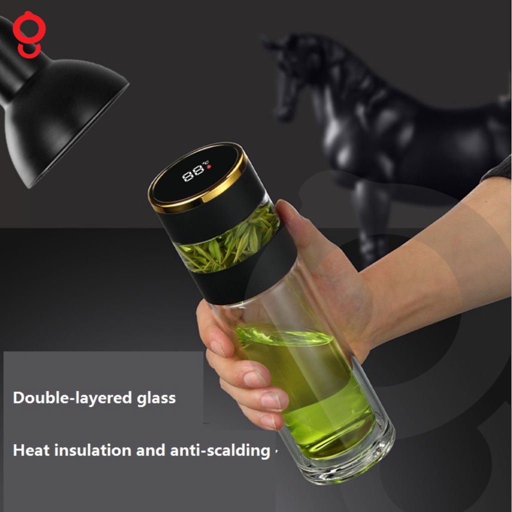 Ganghan Botol Minum Tumbler Teh Kaca Double Wall 350ml Display Suhu