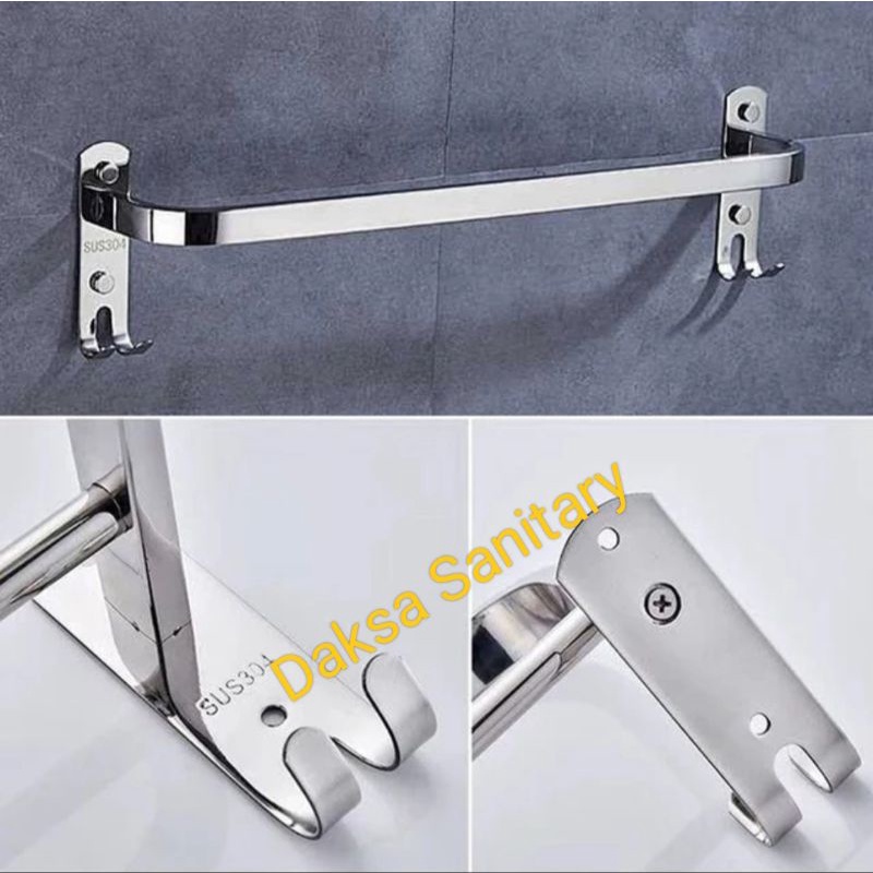 Gantungan Handuk Double Minimalis Stainles 304 / Rak Handuk Double Minimalis / Gantungan Handuk 2 Baris Minimalis Stainles 304