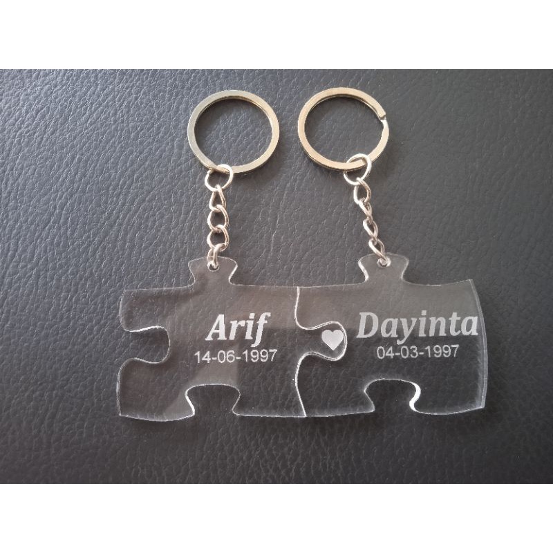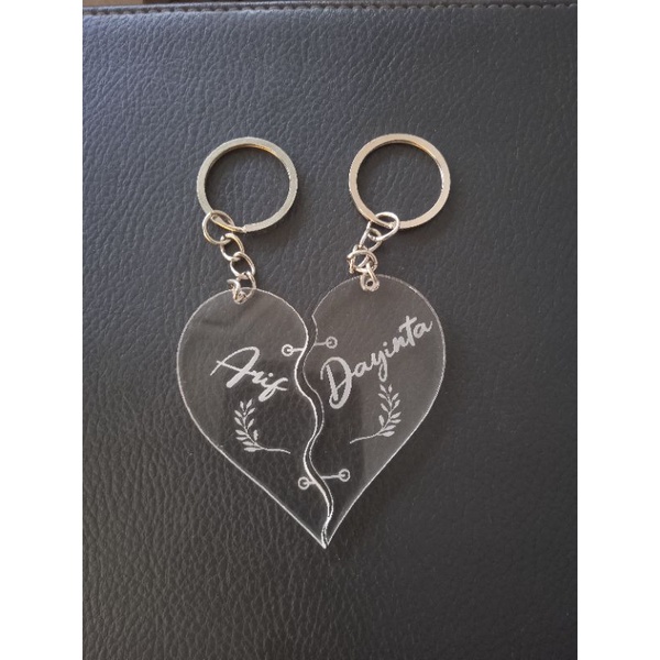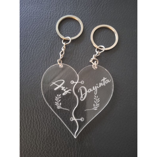 Gantungan Kunci Akrilik Couple / Kopel Nama Custom Grafir - Ganci Couple Custom Nama Grafir Akrilik