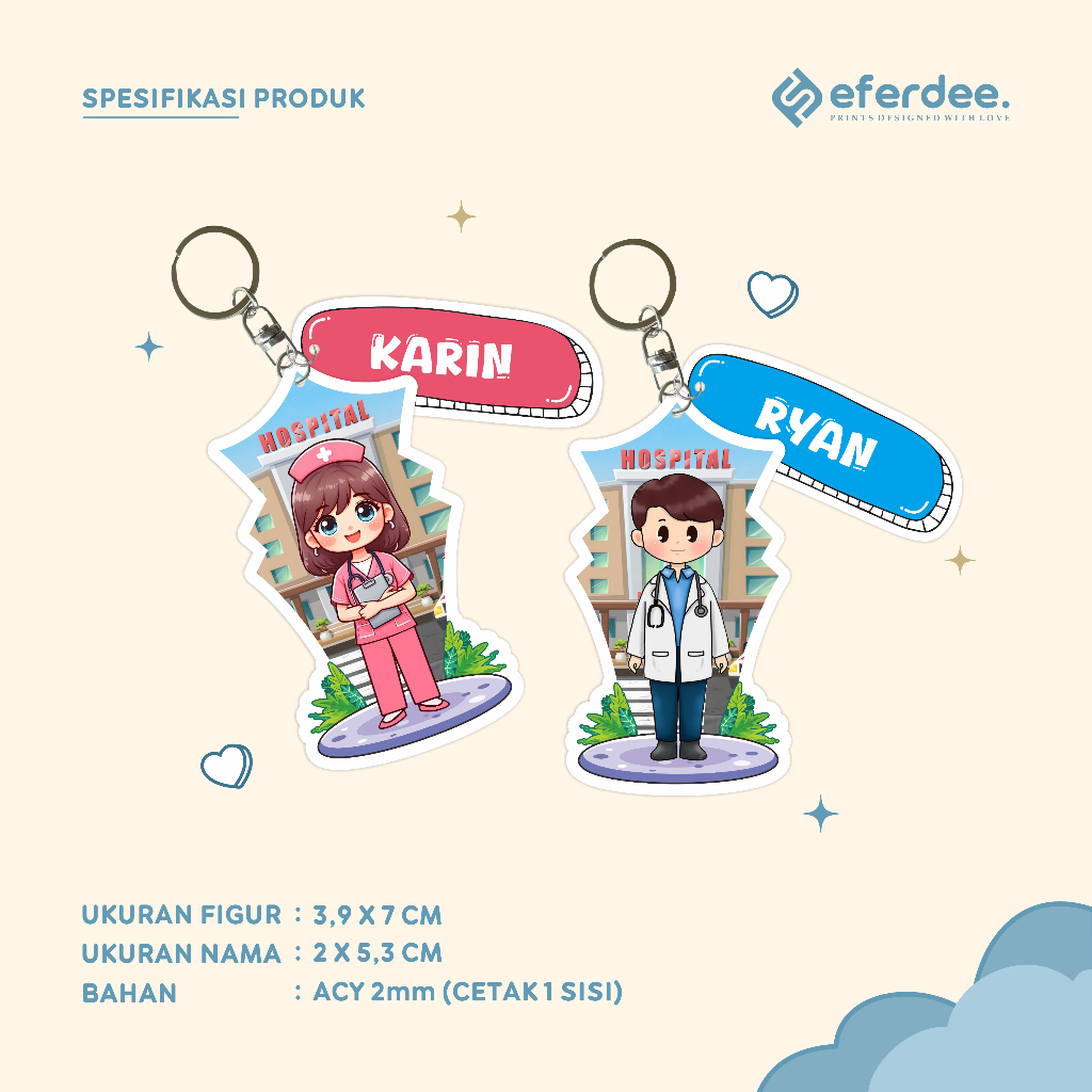 Gantungan Kunci Dokter | Gantungan Kunci Akrilik Tenaga Medis | Ganci Akrilik Custom Nama