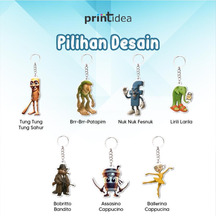 Gantungan Kunci Anomali Keychain Brainroot Tung Tung Sahur Ganci Akrilik UV Anti Pudar Anomali Internet