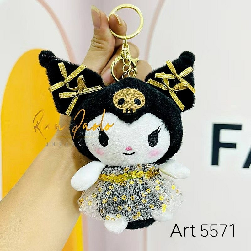Gantungan Kunci Boneka Lucu Sanrio Bulu Pom Pom Fluffy Aksesoris Tas Cinnamorol Premium Rien Paolo