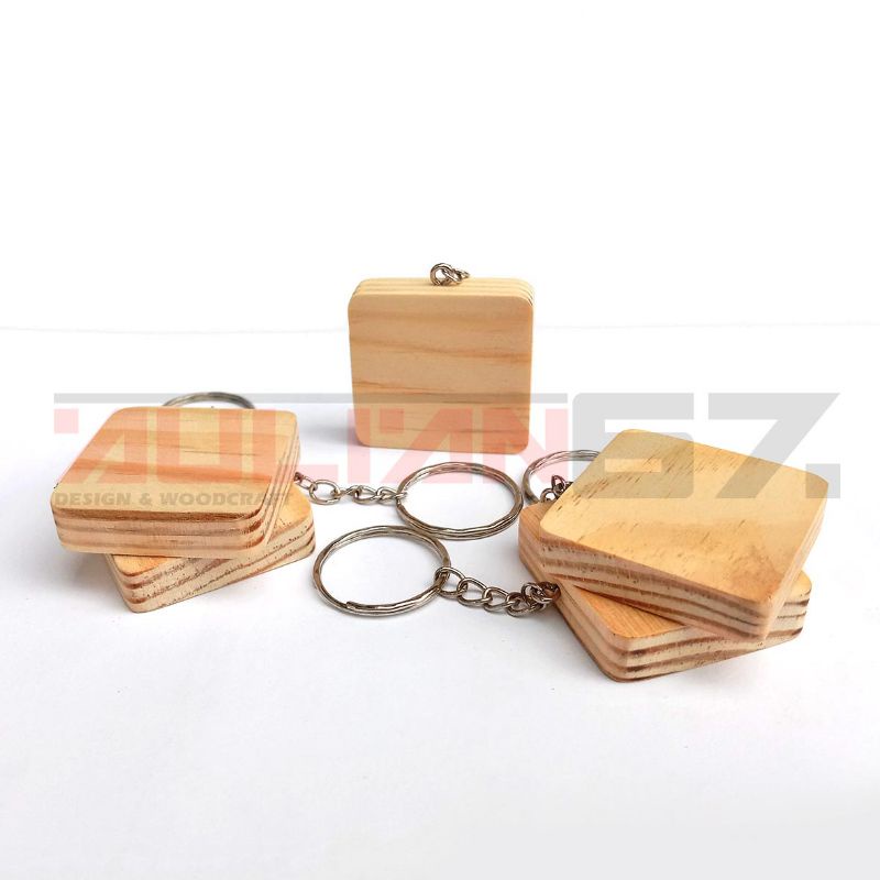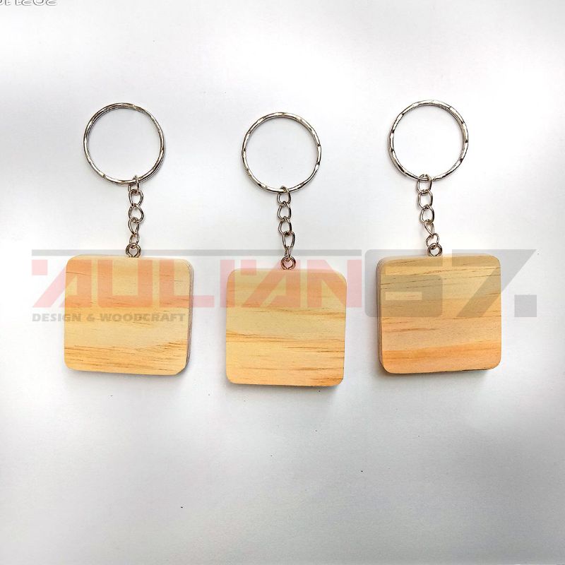 Gantungan Kunci Kayu Polos Bentuk kotak | Bahan Gantungan Kunci Custom