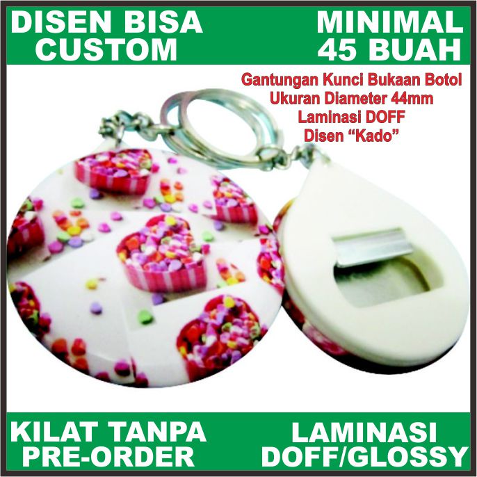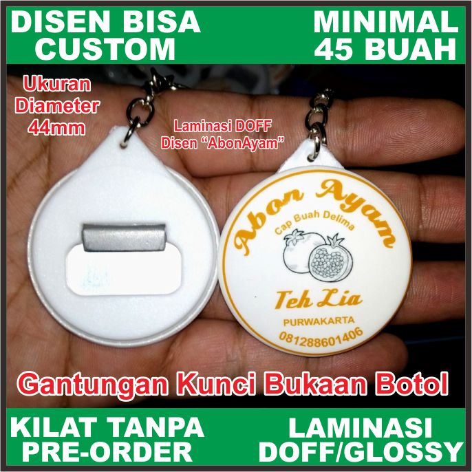 Gantungan Kunci Pin Bulat Plastik Custom Ukuran 44mm Ganci Pembuka Botol Murah PROSES KILAT TANPA PREORDER