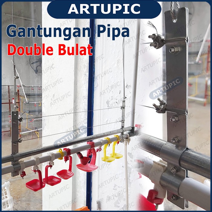 Gantungan Pipa Double Bulat S-hook S-hanger Gantungan Besi Stainlees Jalur Minum Kandang Ayam Daging