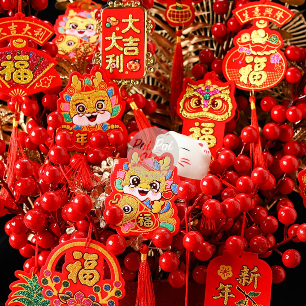 Gantungan Pohon Meihua Hiasan Imlek 2024 CNY Naga Aksesoris Dekor Hampers Hiasan Parcel Hampers Shio Naga Dragon 2024 Glitter Kain Tradisional Kualitas Terbaik