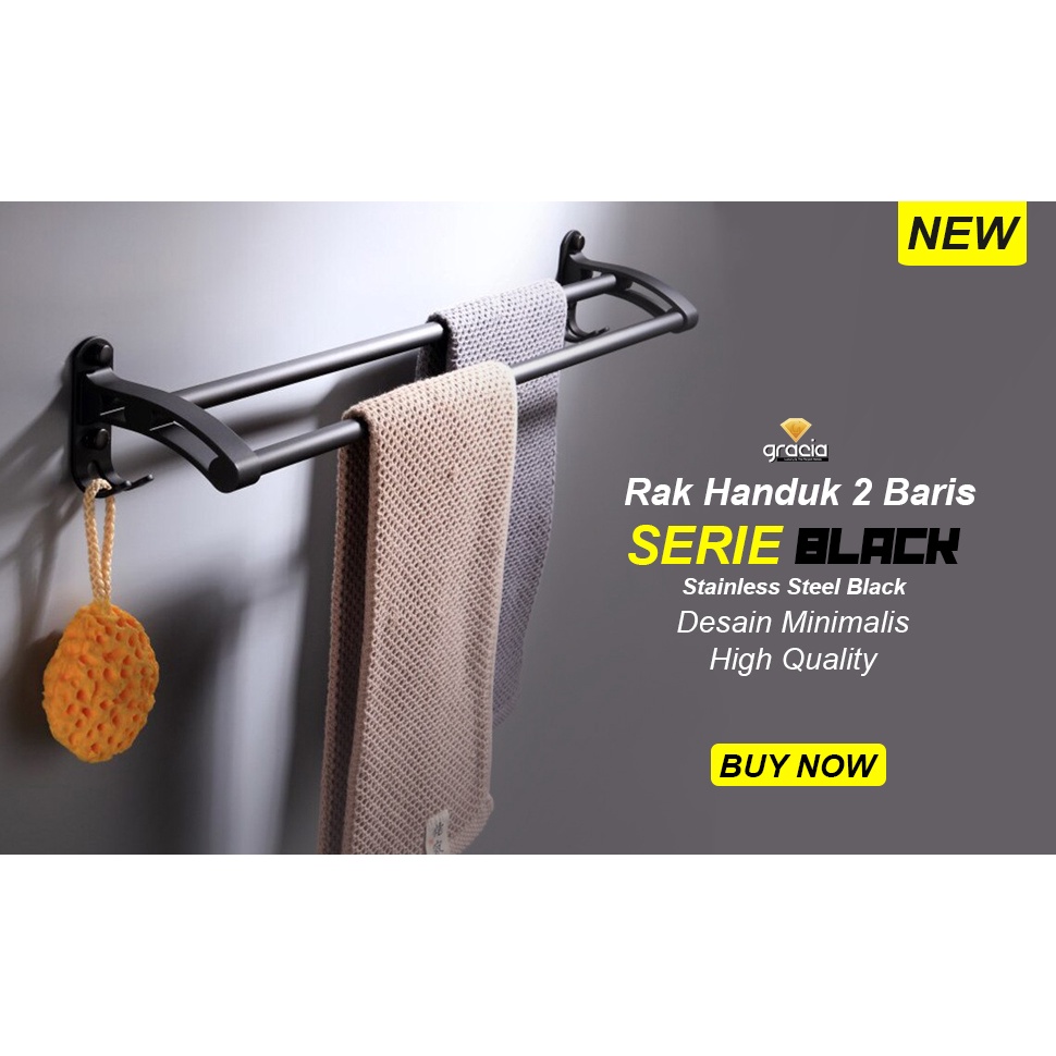 Gantungan Rak Handuk Black 2 Baris Stainless Steel Gantungan Handuk Kapstok Hitam Doff