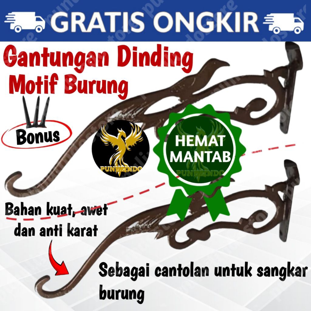 Gantungan Tempel Dinding Tembok Motif Burung Gantungan Sangkar Burung Rak Pot Hemat Min 2 Pcs
