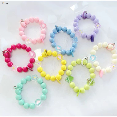 Gantungan hp Korea Warna Warni Manik-Manik motif Love & pita gantungan gelang gantungan tas-HU