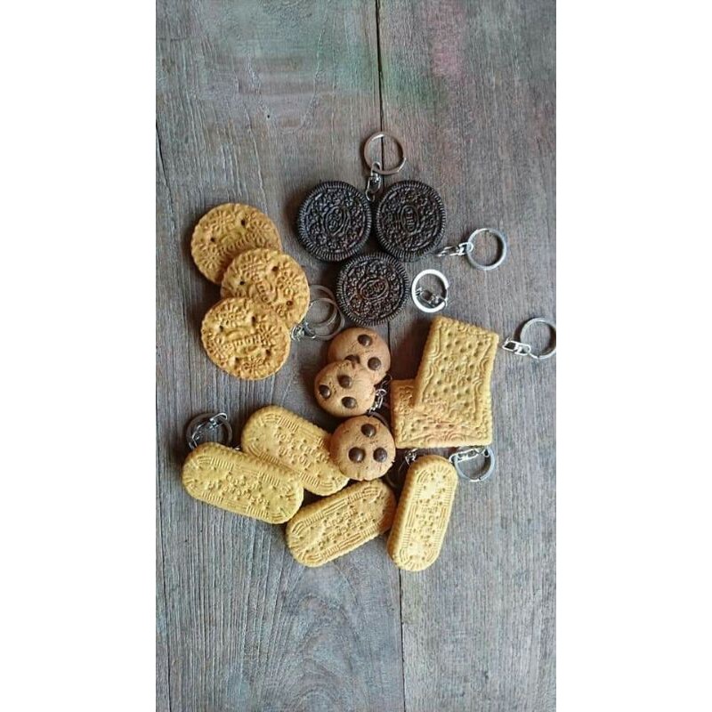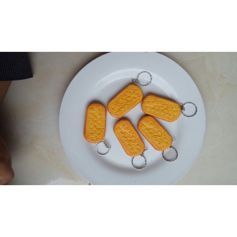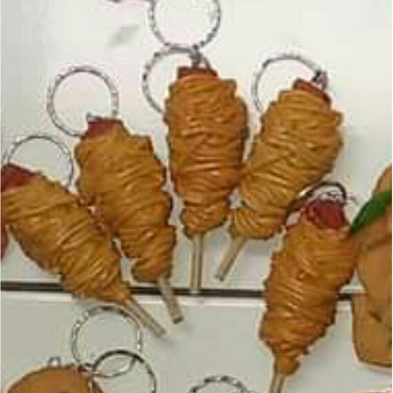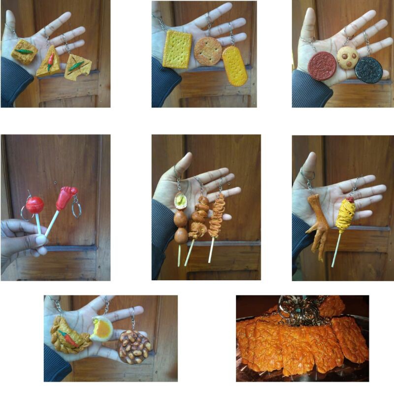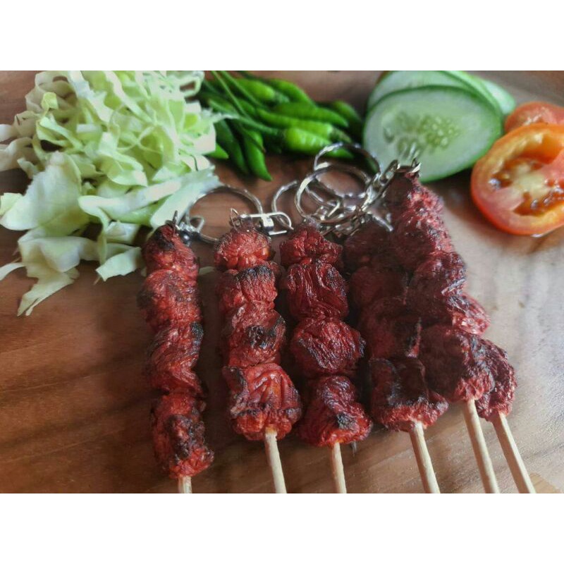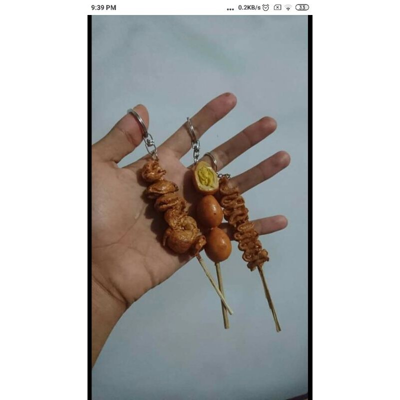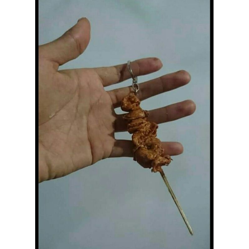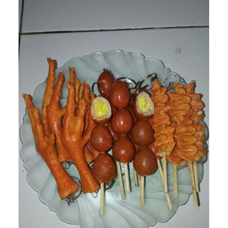Gantungan kunci makanan / snack mirip aslinya (sate usus, sate rempelo ati, sate telur, biskuit)