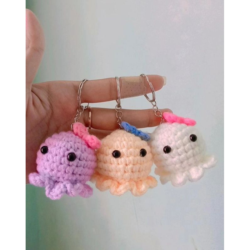 Gantungan kunci octopus pita lucu/chrochet keychain homemade