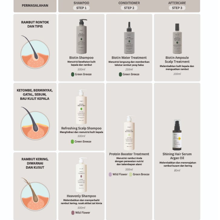 SimplyO Refreshing shampoo Green Breeze (Shampoo Ketombe) / Heavenly shampoo Wild Flower (shampoo rambut kering)