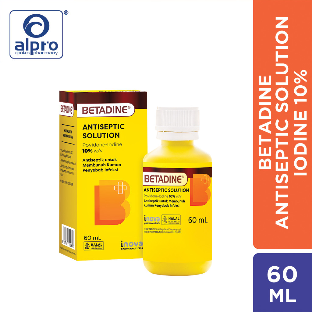 Betadine Antiseptic Solution Iodine Obat Merah Luka 10% 60Ml