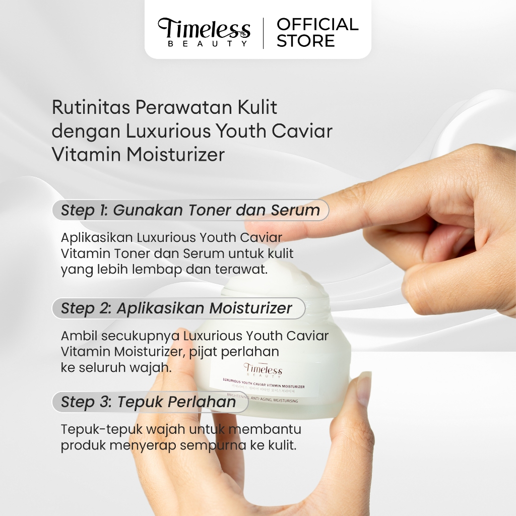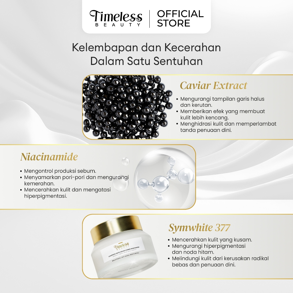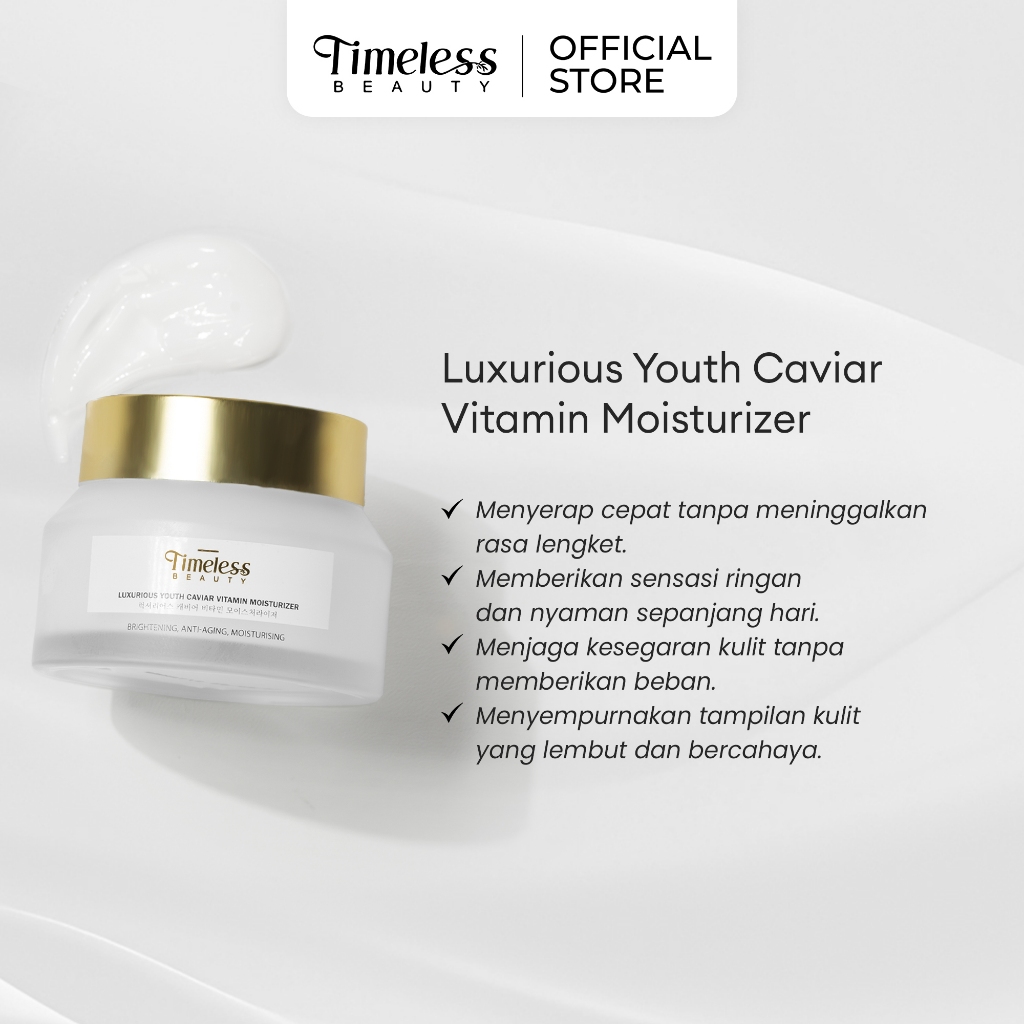 TIMELESS BEAUTY Krim Wajah Kaviar Mencerahkan Kulit | Krim Pelembap Menenangkan Tanpa Iritasi, Memutihkan dan Mencerahkan Wajah 50g