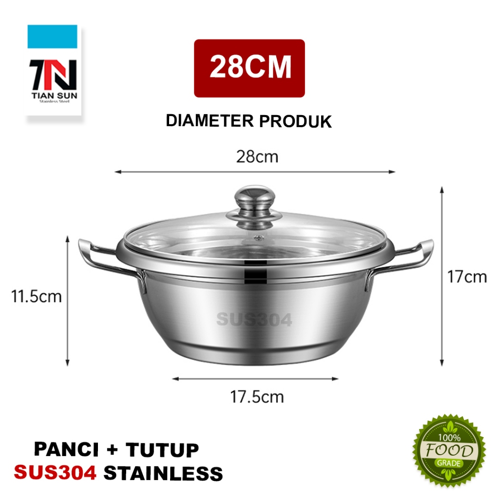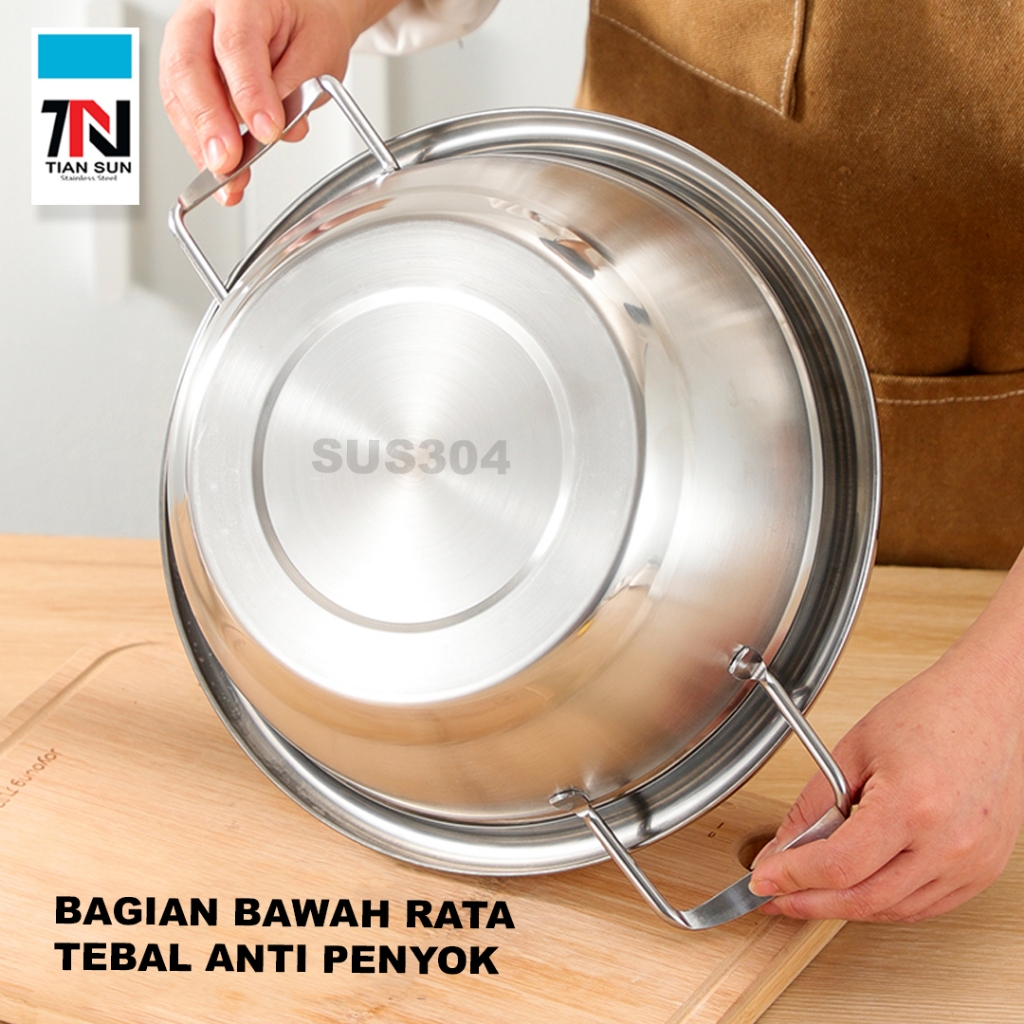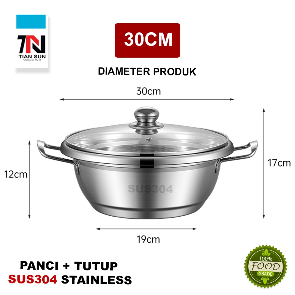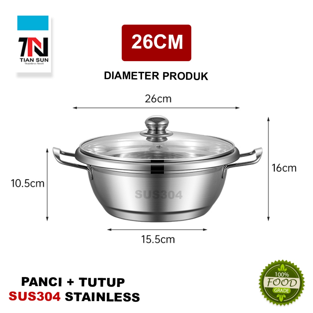 Tian Sun Baskom Stainless Steel SUS304/UK.20cm-30cm/Panci Anti Lengket/Panci Sup Stainles Tutup Kaca