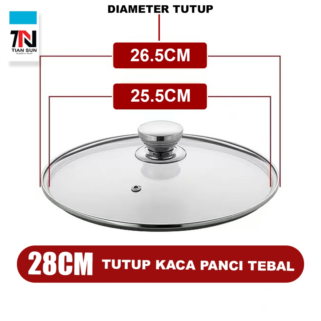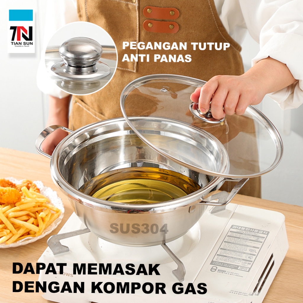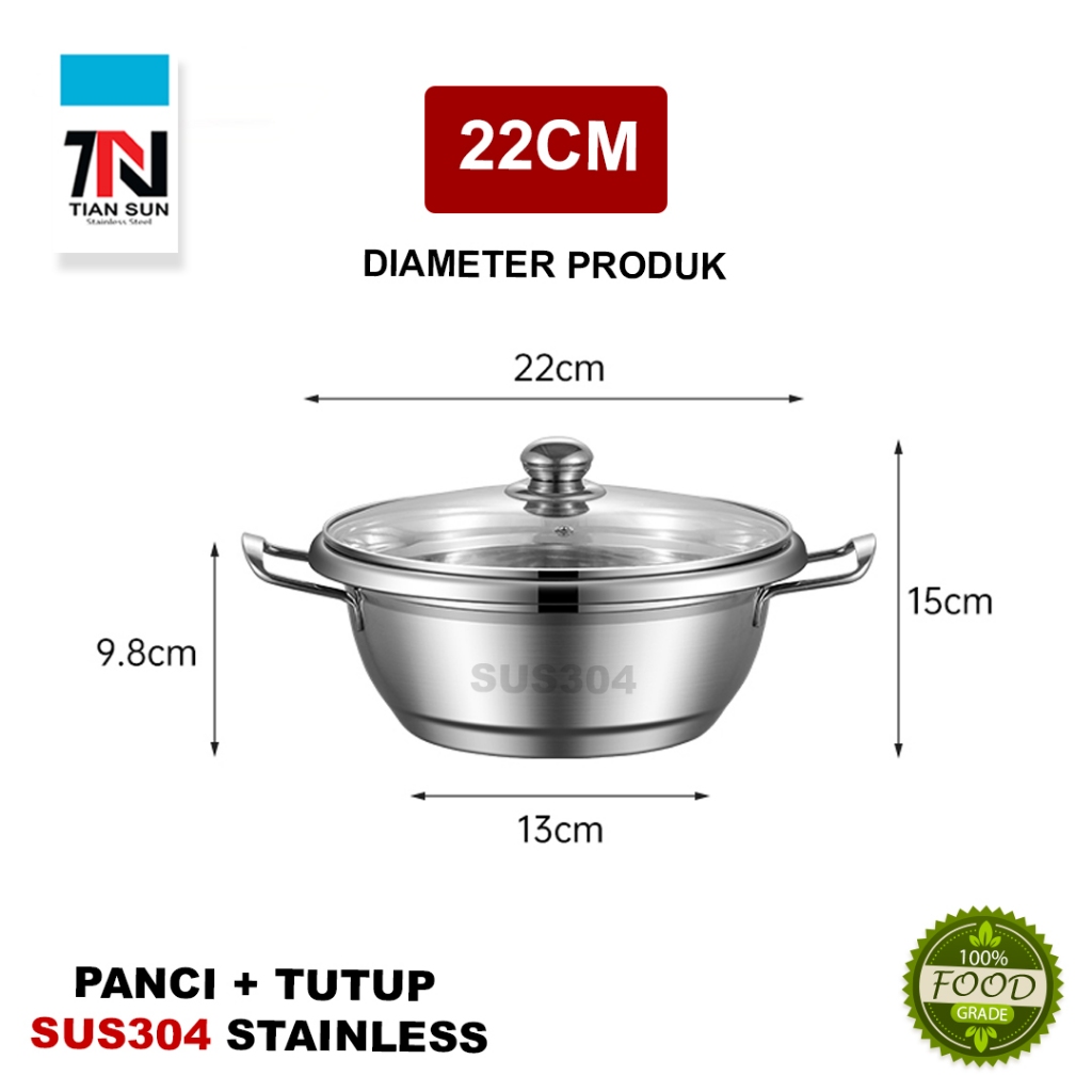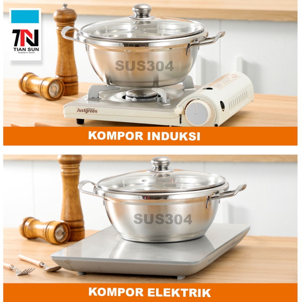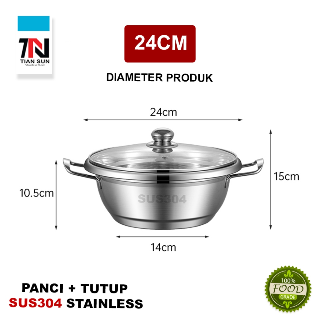 Tian Sun Baskom Stainless Steel SUS304/UK.20cm-30cm/Panci Anti Lengket/Panci Sup Stainles Tutup Kaca