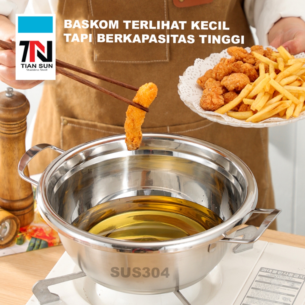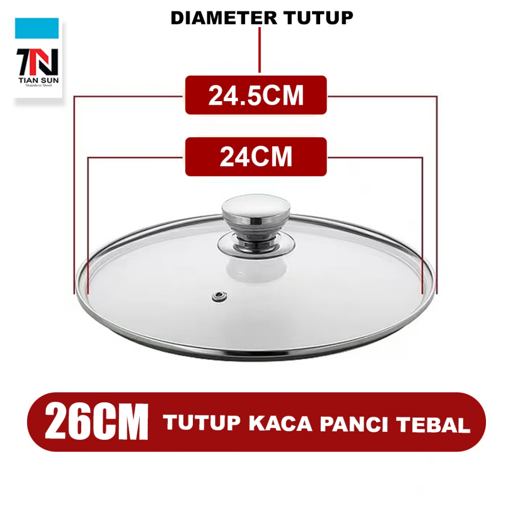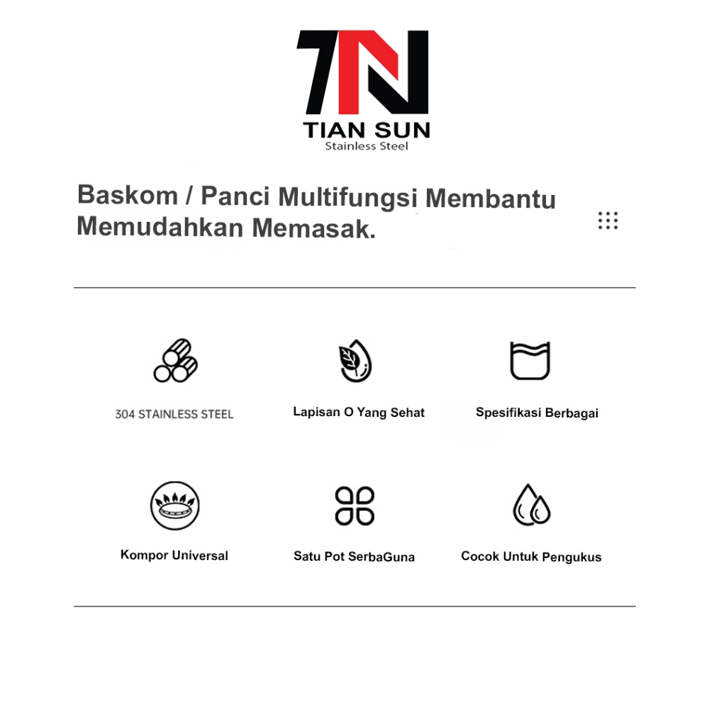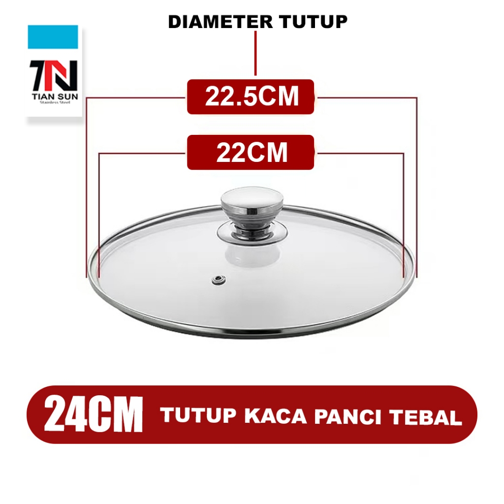 Tian Sun Baskom Stainless Steel SUS304/UK.20cm-30cm/Panci Anti Lengket/Panci Sup Stainles Tutup Kaca