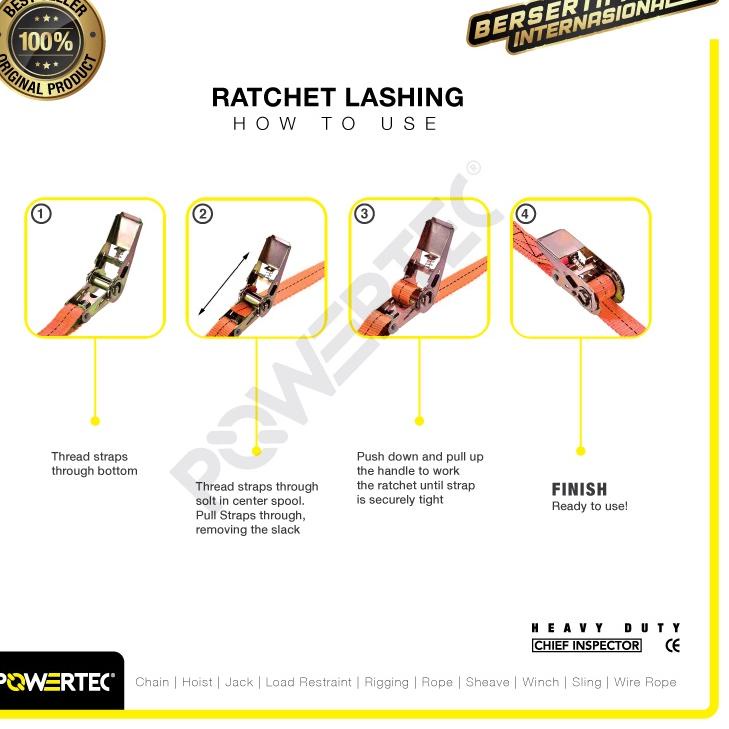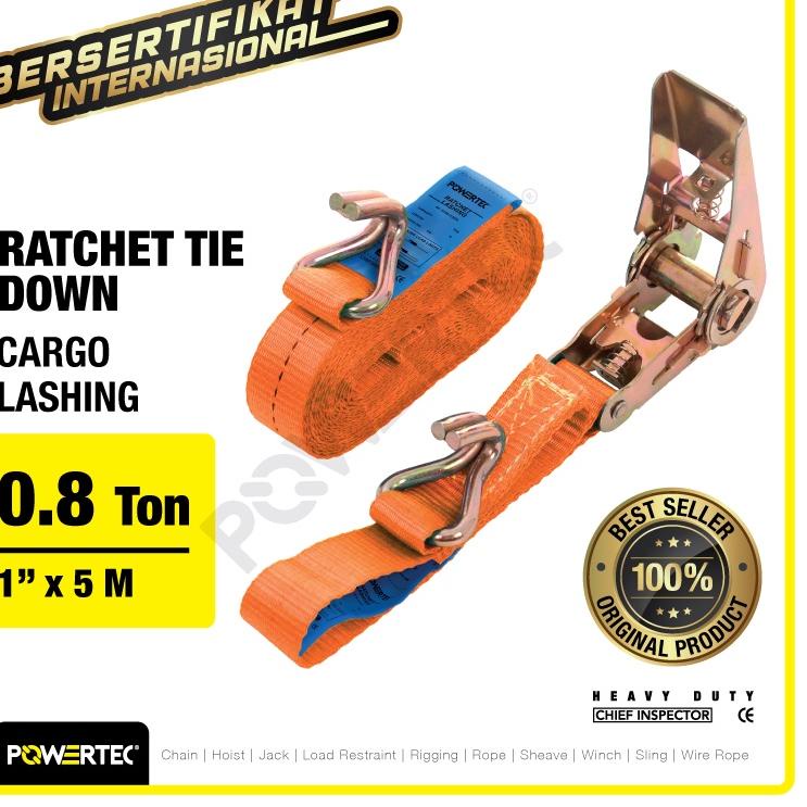 Garansi Terbaru POWERTEC Ratchet Tie Down Cargo Lashing Belt 1" x 5M Pengikat Barang