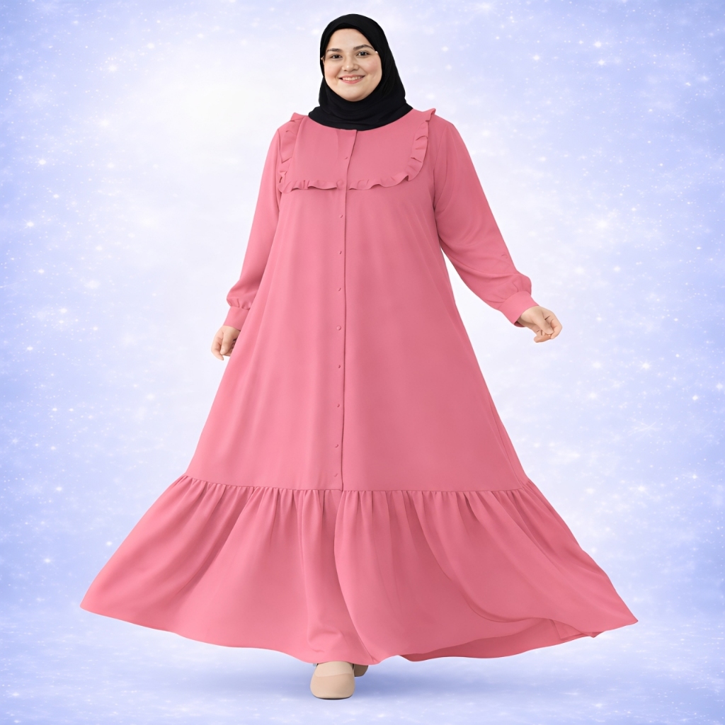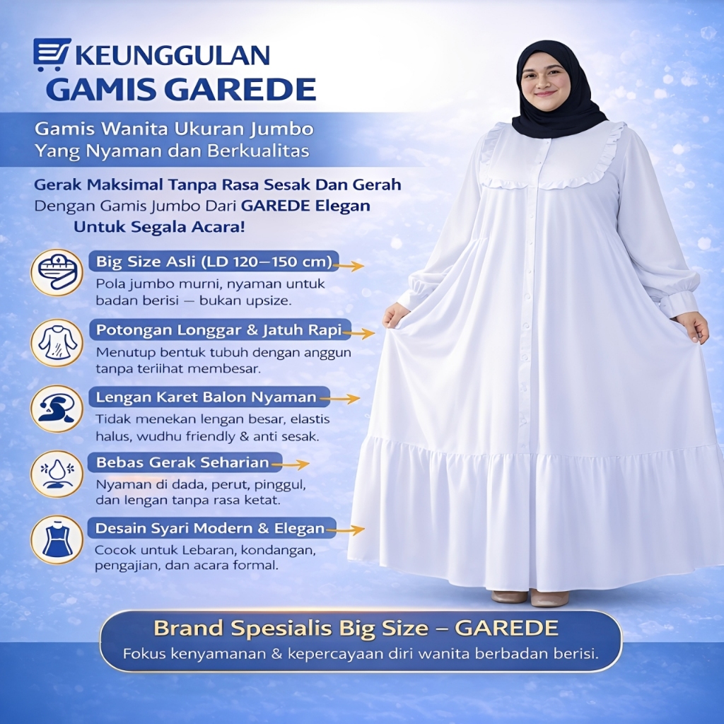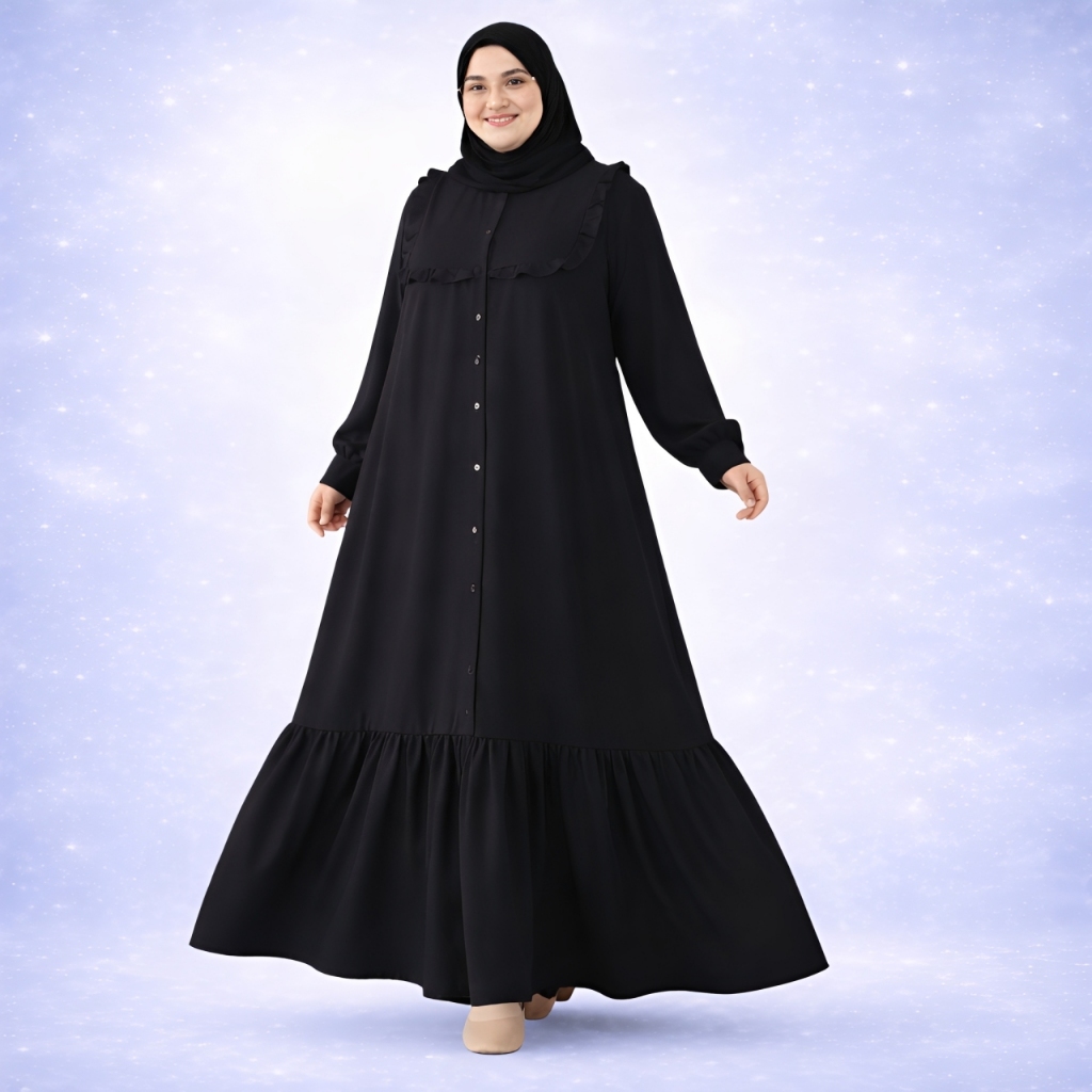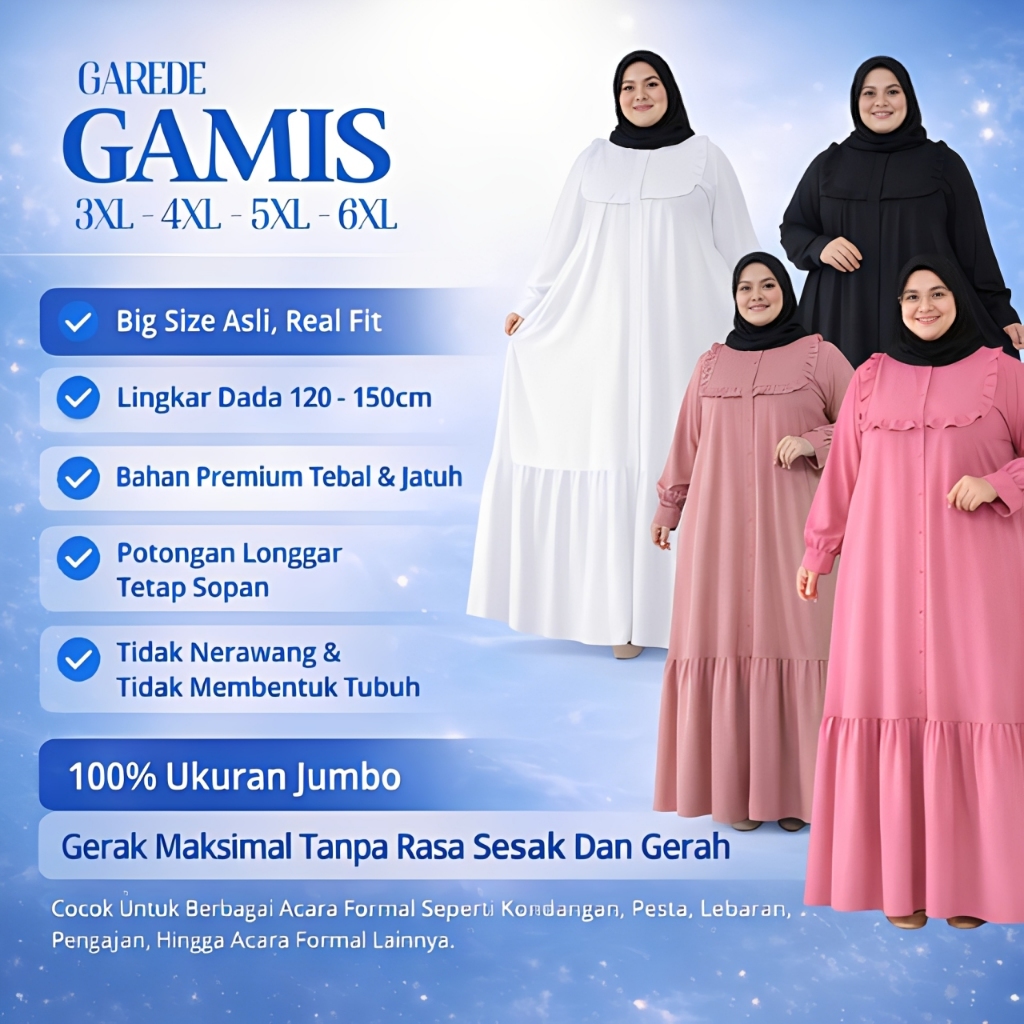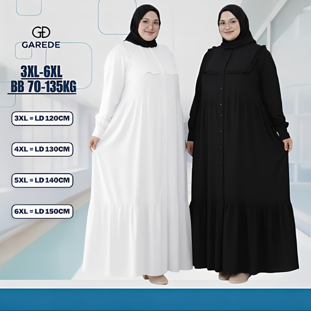 Garede - Baju Gamis Dress Lebaran Jumbo LD 120 130 140 150 Hitam Putih Polos Mewah Elegan Terbaru