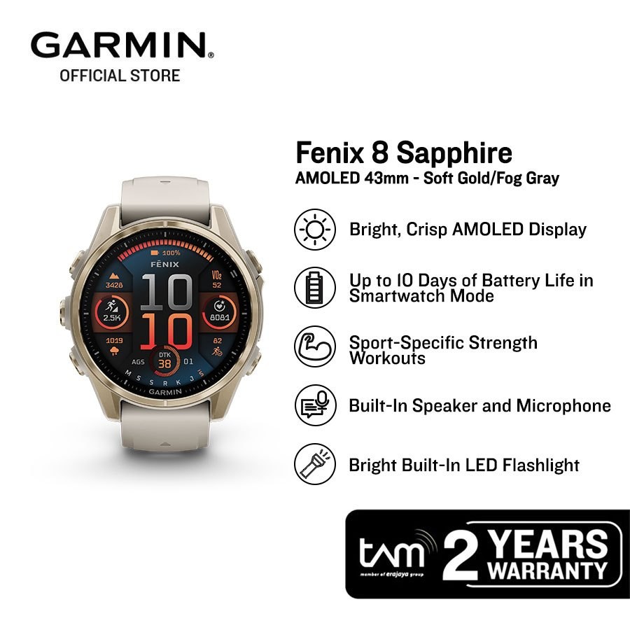 Garmin Fenix 8 Sapphire AMOLED 43mm - Soft Gold/Fog Gray