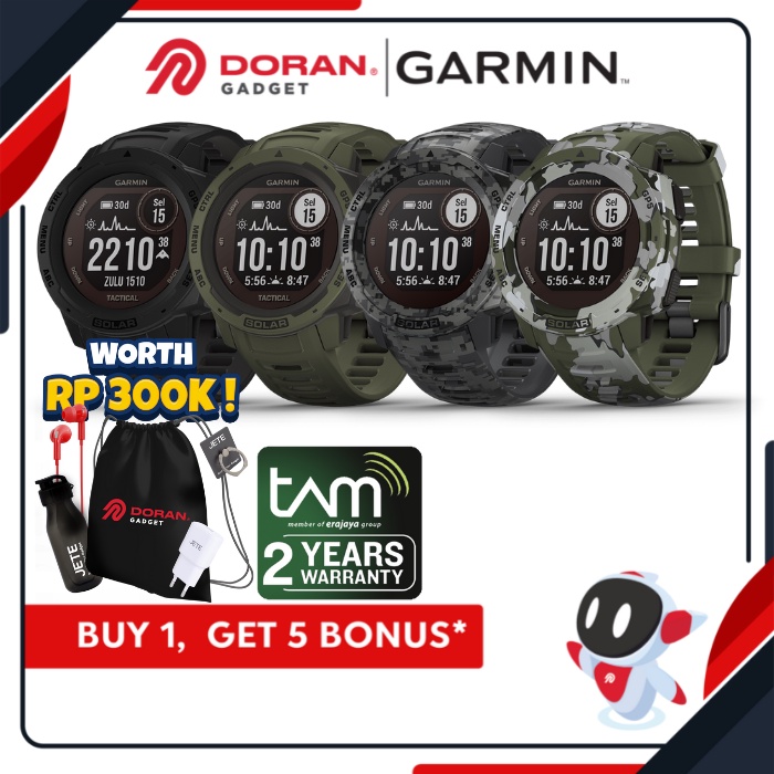Garmin Instinct Solar Tactical Edition Black | Green Moss | Camo Graphite | Camo Lichen - Garansi Resmi TAM 2 Tahun