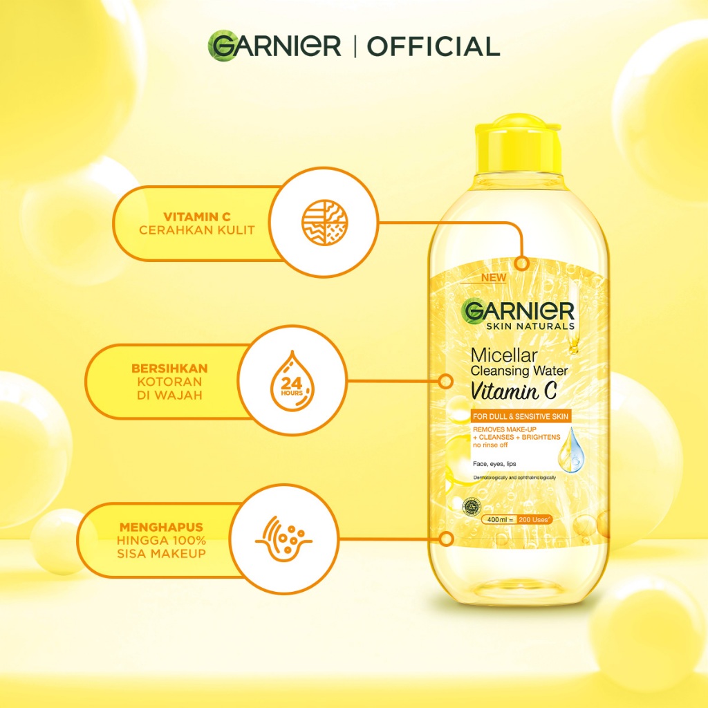 GARNIER Micellar Water Vitamin C Skin Care 125ml 400ml Skincare Cleansing - Pembersih Wajah & Make up untuk Kulit Kusam Micellar Cleansing Water