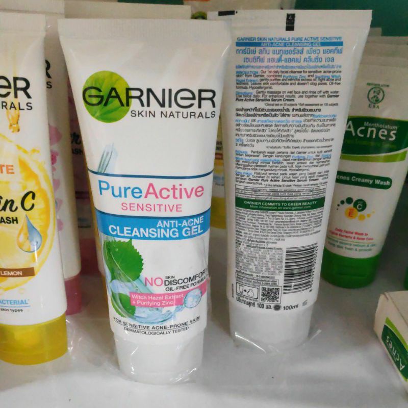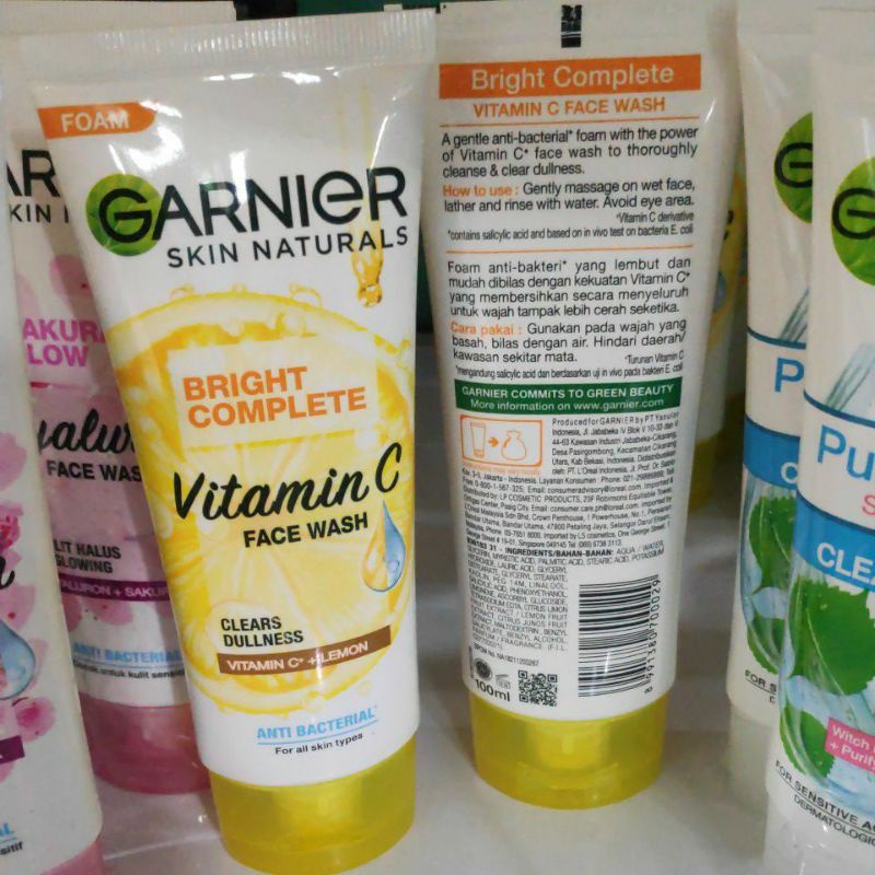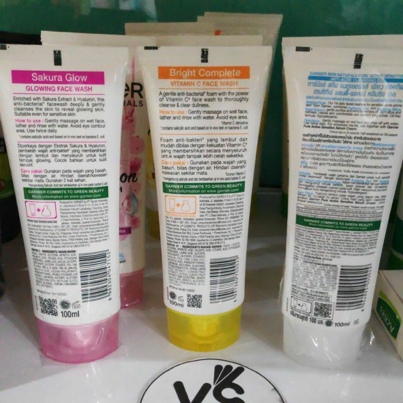 Garnier Sabun Cuci Muka 100 ml Cewek Wanita Sakura Glow Face Wash Pink Bright Complete jenis kulit Kuning Pure Active Sensitive Anti Acne Cleansing Gel