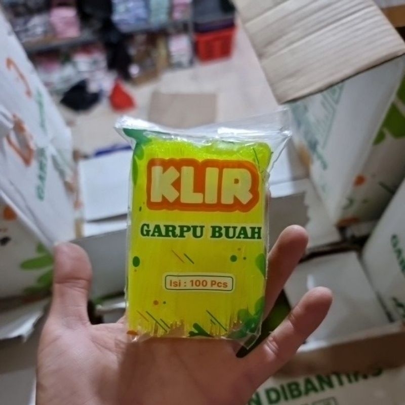 Garpu Buah / Cake / Kue / Puding MEREK KLIR - Garpu Plastik Tebal - Warna Warni PEGANGANGAN LOVE ISI 100 PCS