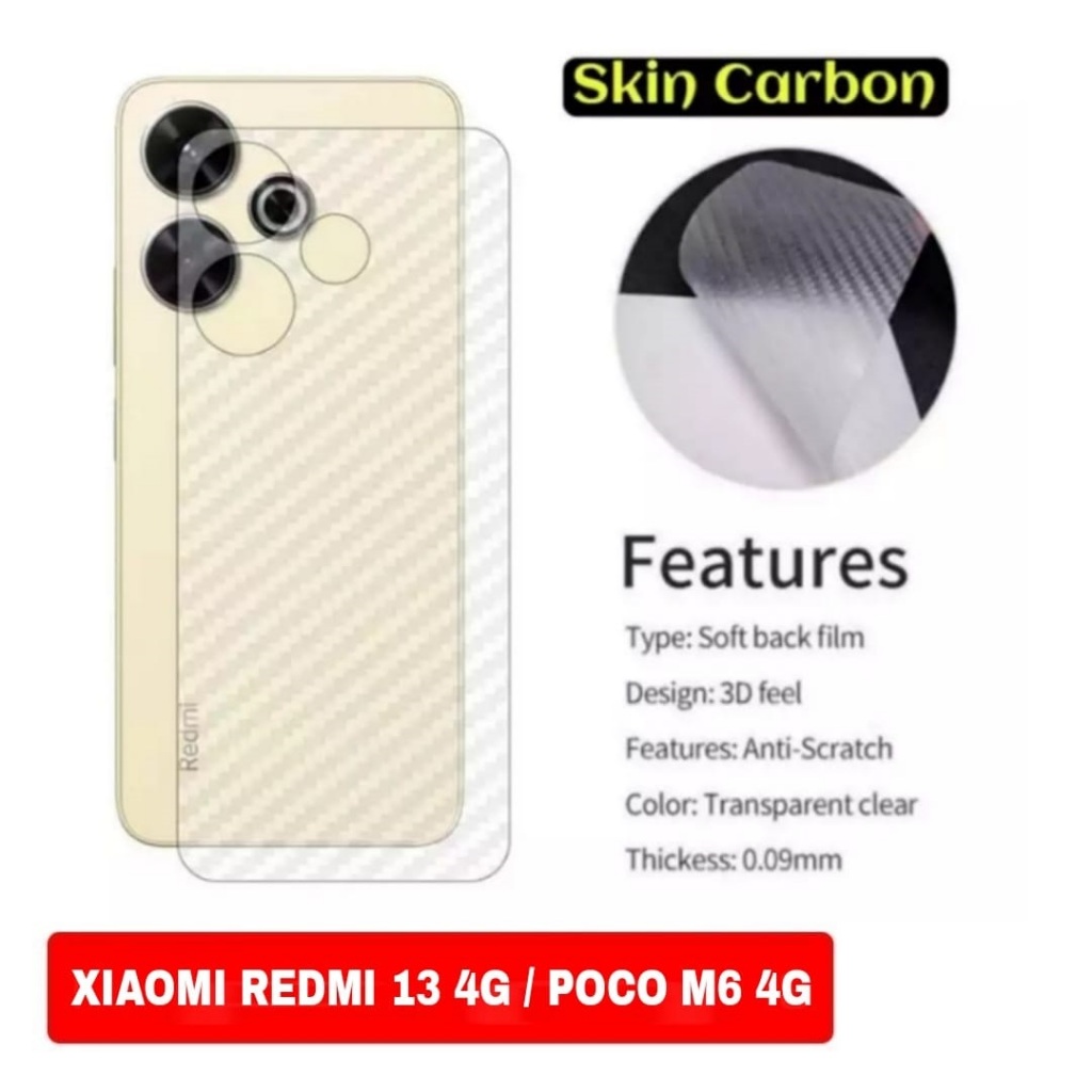 Garskin Carbon Redmi 13 / Redmi 13x 4G / Poco M6 / Redmi 13c / Poco C65 Back Soft Skin Karbon Fiber Film Sticker Anti Jamur Xiaomi