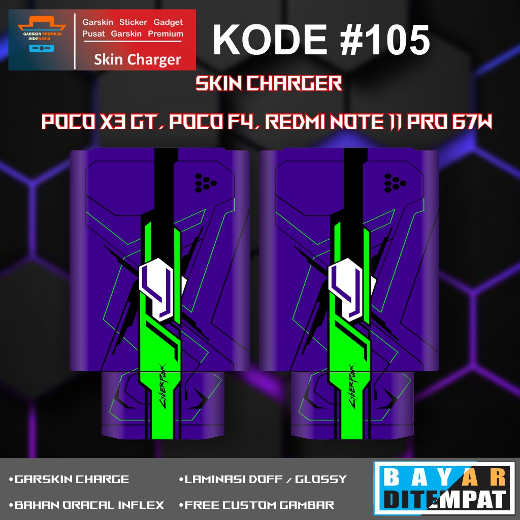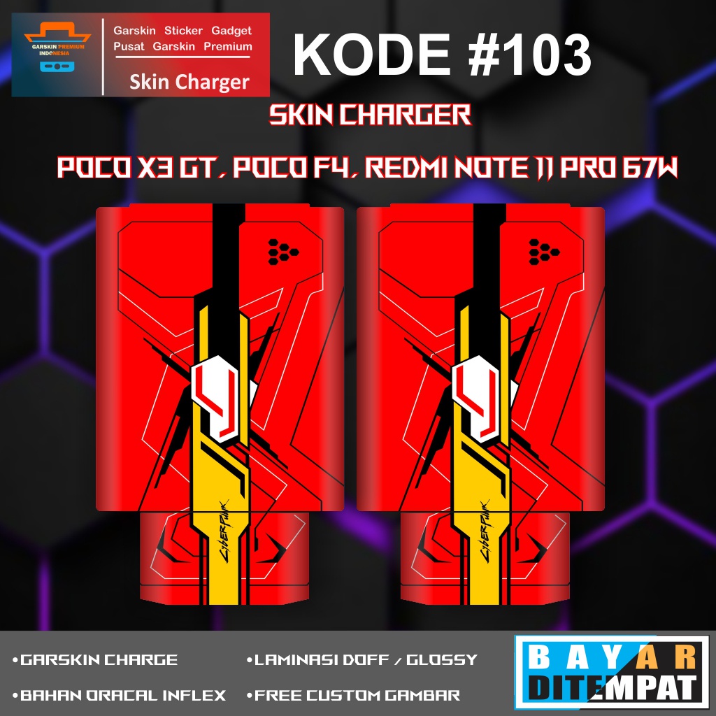 Garskin Sticker Charger POCO X3 GT, POCO F4, Redmi note 11 Pro 67W Turbo Charge Motif Kode # 101-105 Bisa Custom