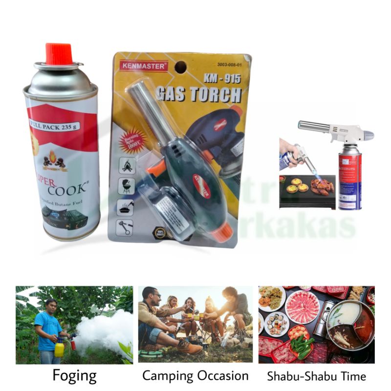Gas Torch KM 915 Kenmaster + Gas Tabung Super Cook - Gas portable - Pematik Api - Blow Torch - BBQ