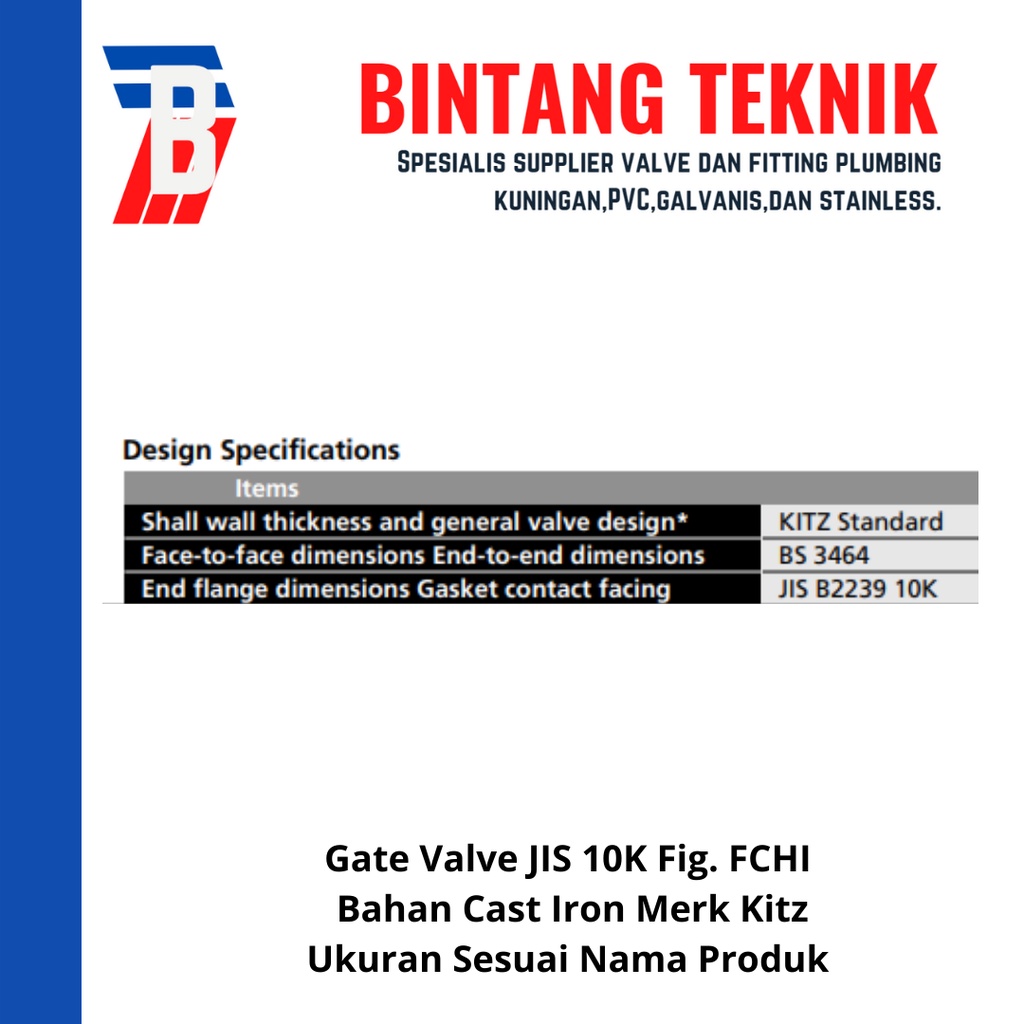 Gate Valve 3" inch Flange JIS10K Merk Kitz Fig. FCHI