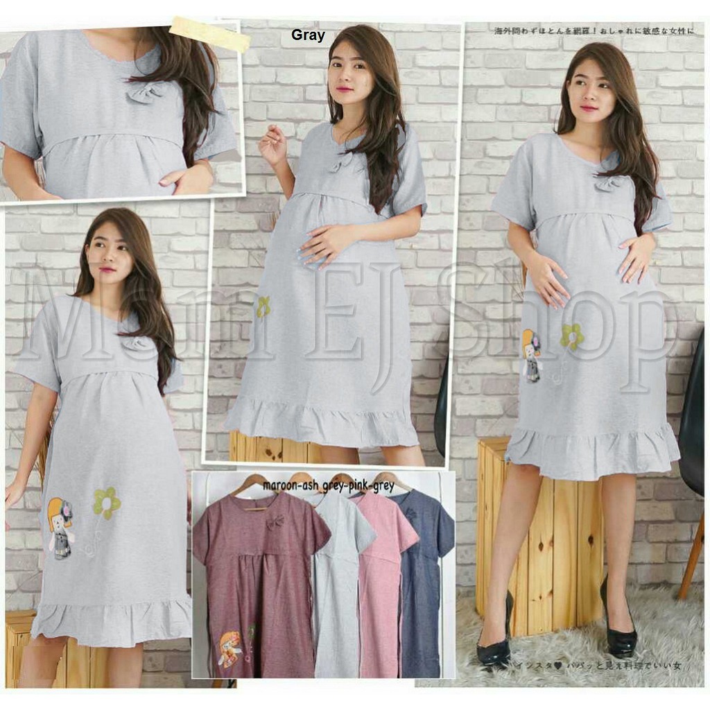 Gaun Ibu Hamil dan Menyusui Gambar Bunga 003 Serat Kayu - Mom EJ Shop