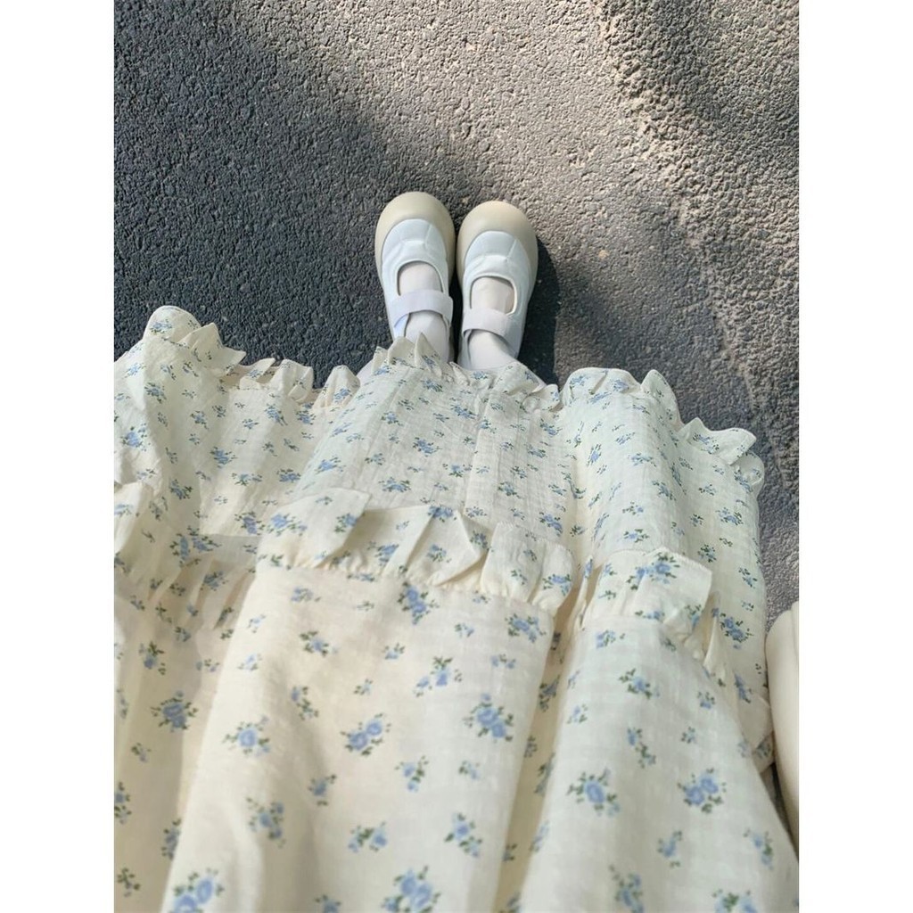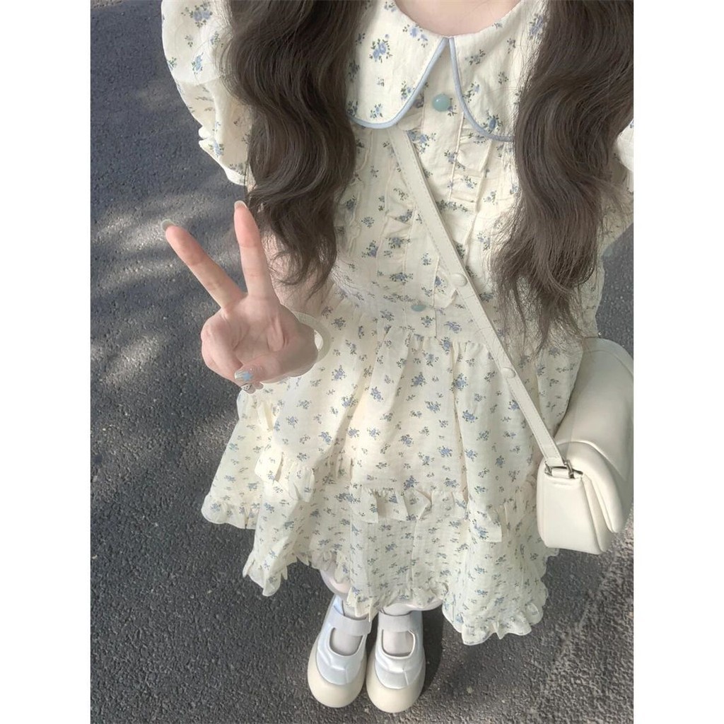 Gaun bunga gaya Cina boneka dasi dasi busur gadis manis segar kecil yang lucu rok gaya Cina baru yang feminin