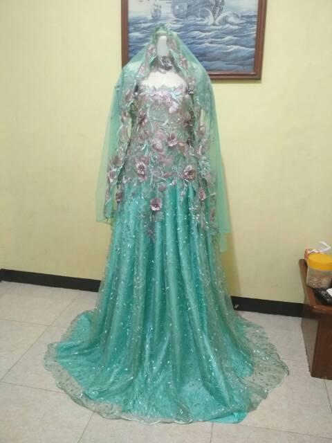 Gaun pengantin barbie bunga 3D tile akar mutiara / gaun preweding