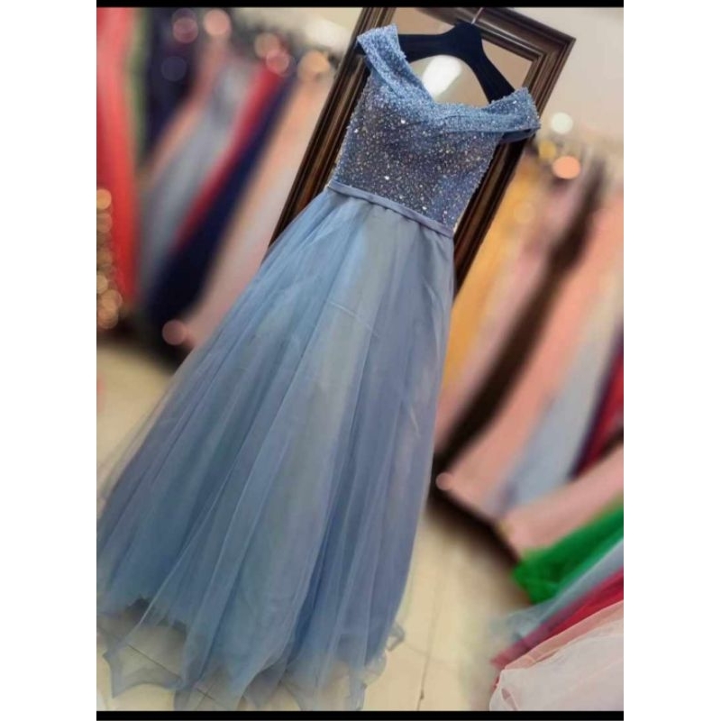 Gaun pesta merah maroon peach hijau sage biru muda longdress bridal premium fio05