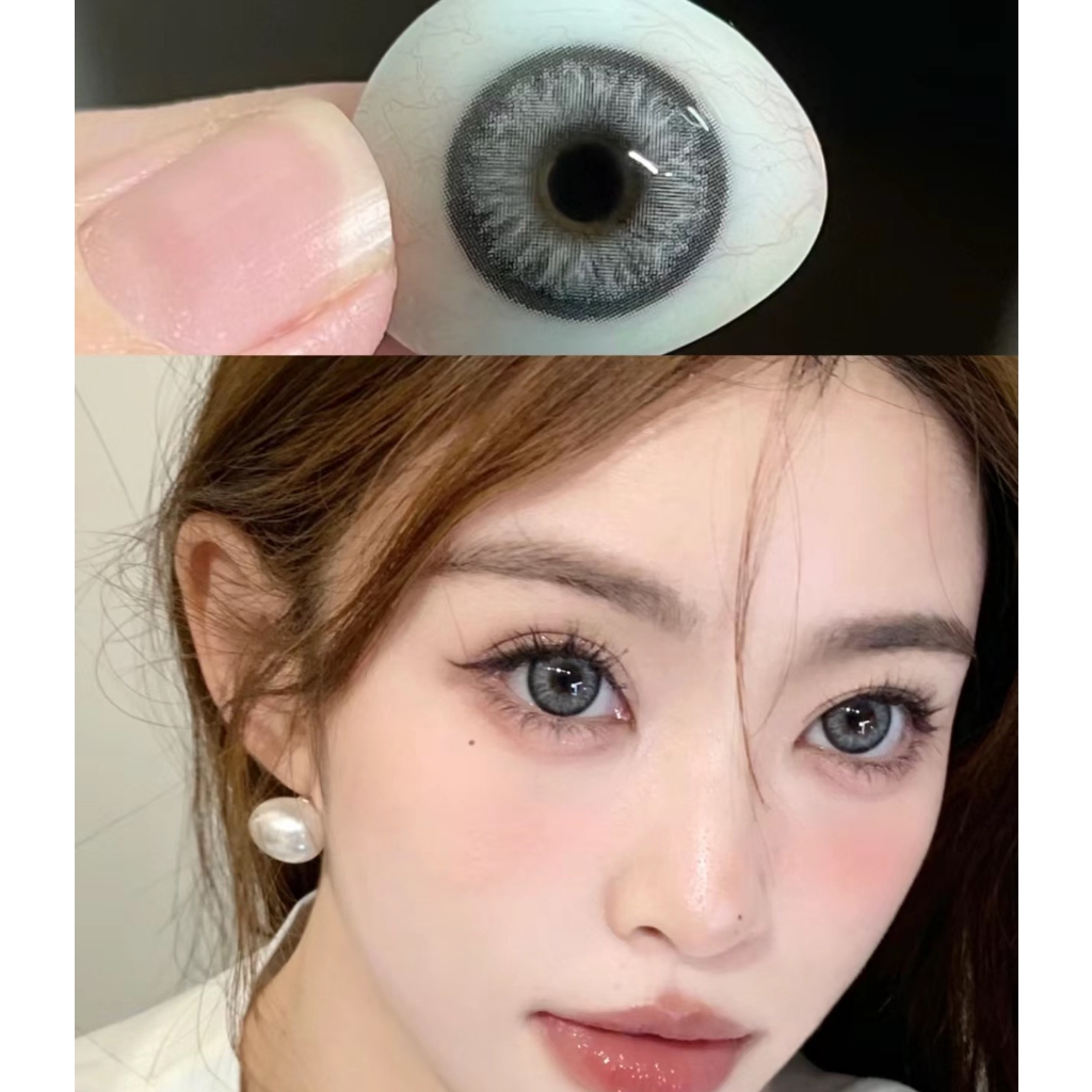 Gaya Baru Terbaik 2 lembar Lensa Kontak Berwarna Lembut Hutan Tahunan menggunakan lensa kontak abu-abu terang mata Korea