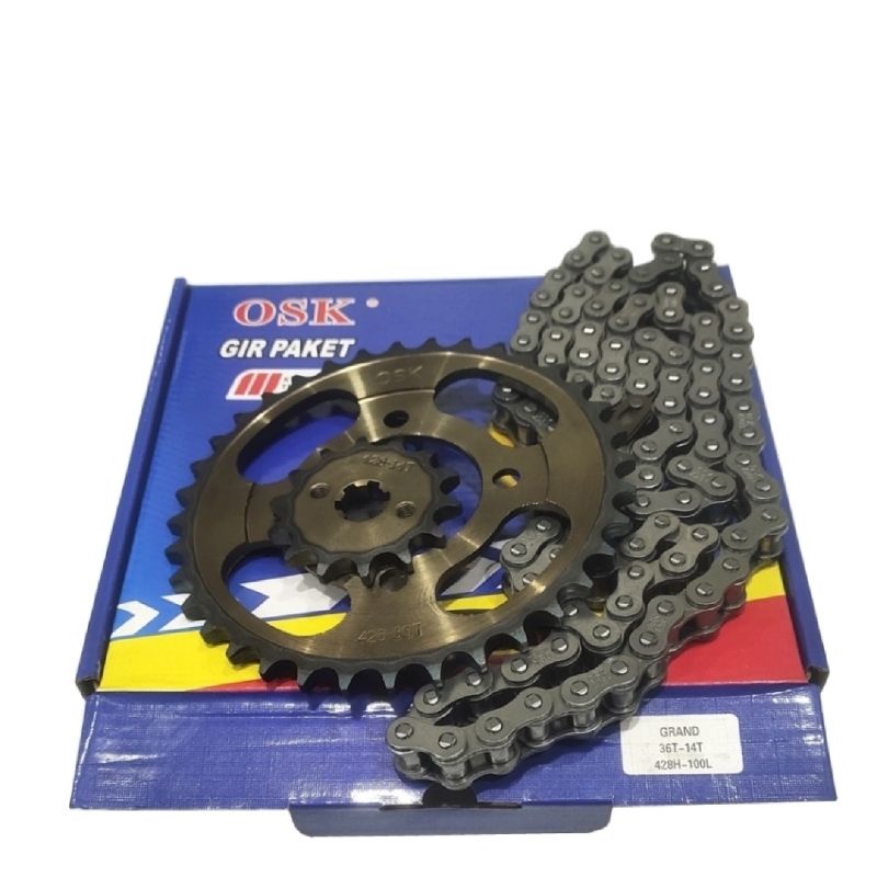 Gear Paket Depan Belakang Set Rantai Grand Astrea Prima Legenda Ukuran Standar Ori 14T-36T/428H-100L OSK