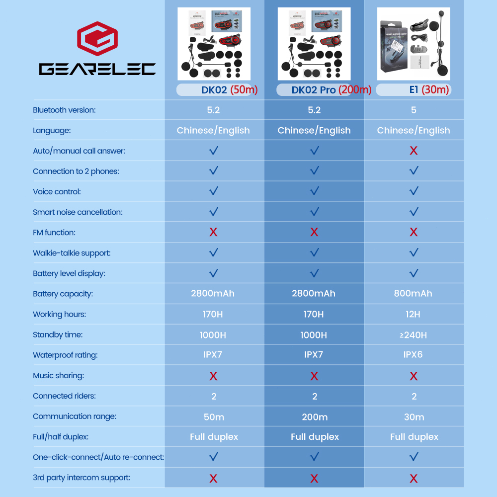Gearelec intercom BT5.2 DK02 Helm Bluetooth Headset Hands Free Call Kit IPX7 Tahan Air 2800mAh