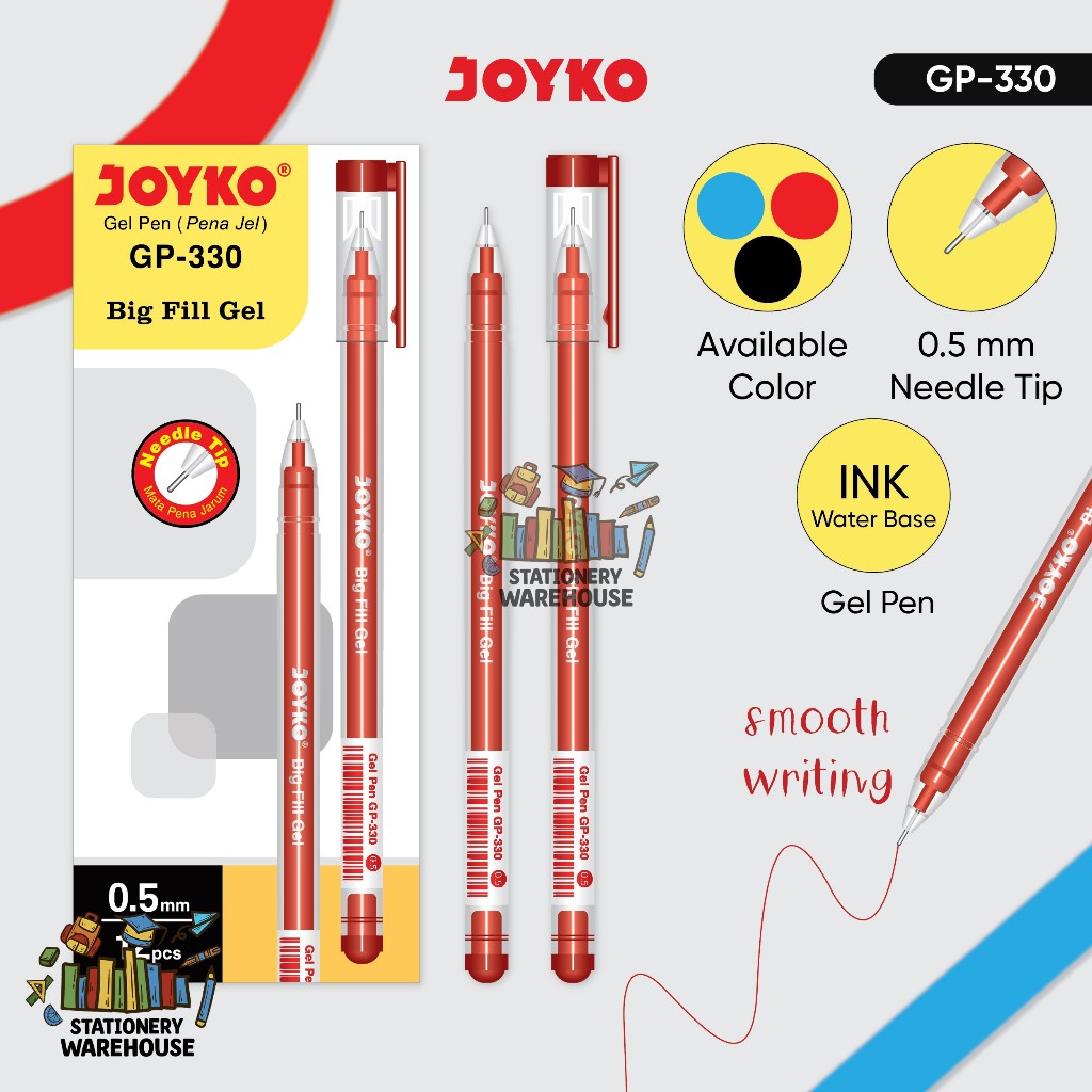 Gel Pen Pulpen Pena Joyko GP-330 Big Fill Gel 0.5 mm 1 Box 12 PCS