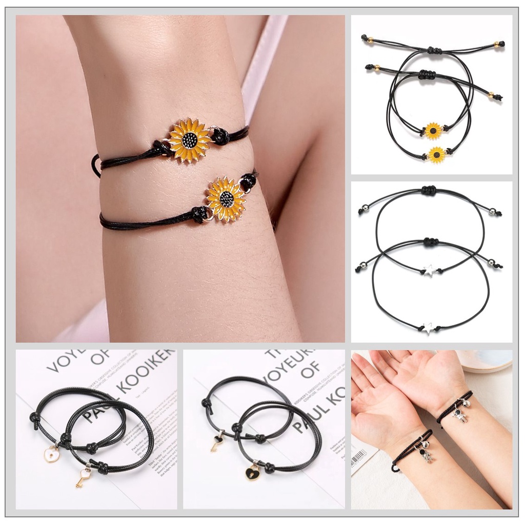 WBS Gelang Couple Tali Isi 2 Magnet Gelang Bracelet Tali Persahabatan Anyaman Krisan Bunga Matahari Fashion Wanita & Pria Adjustable Couple GL007