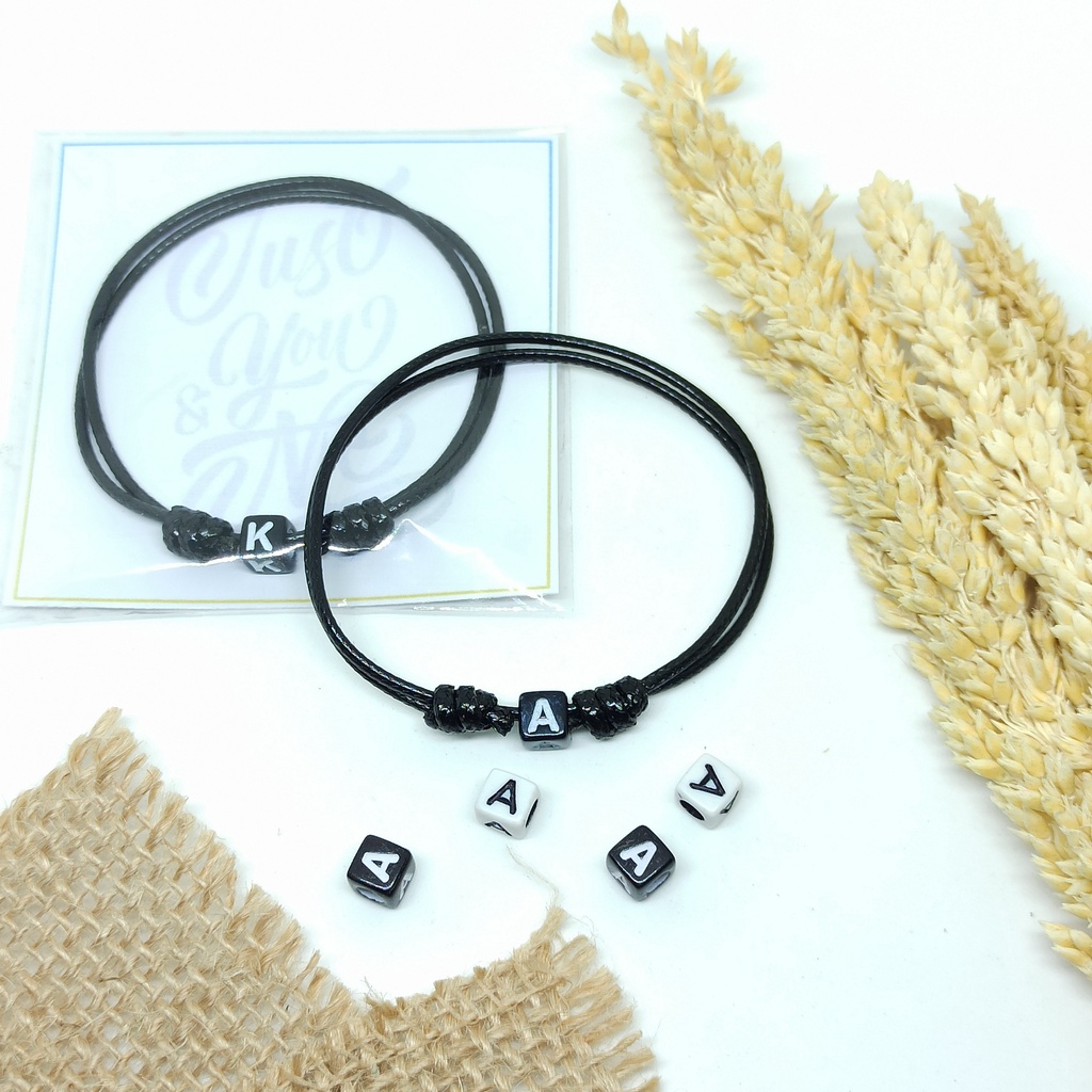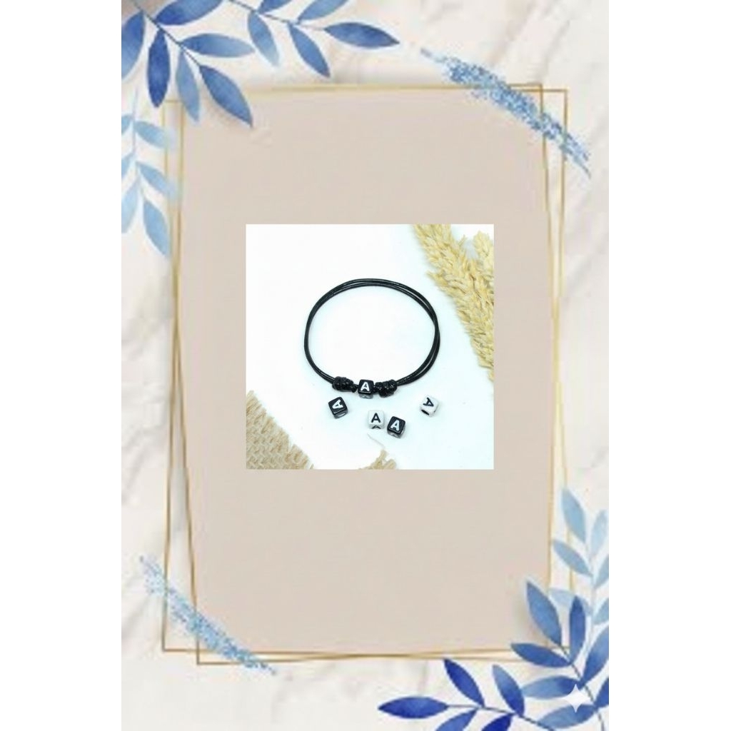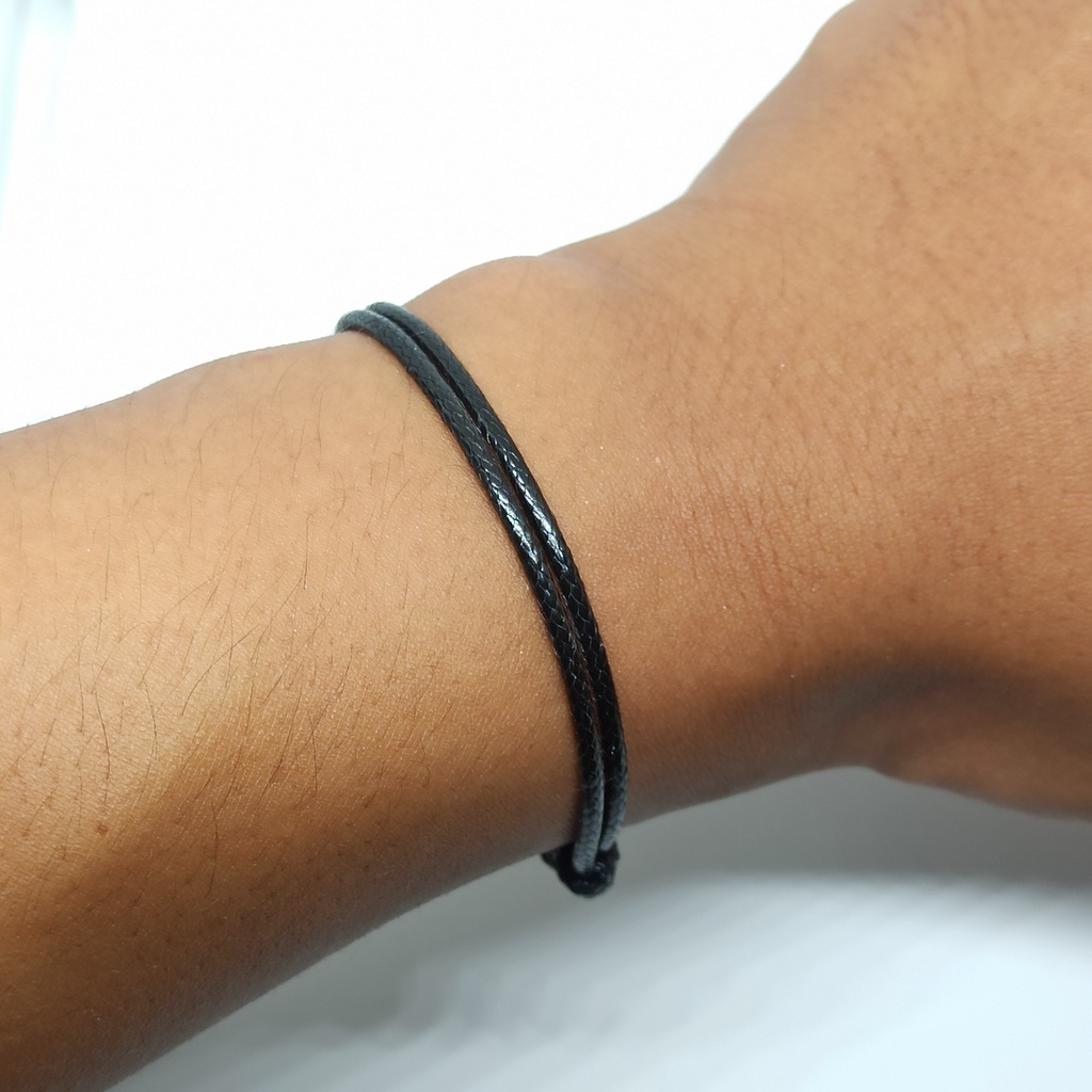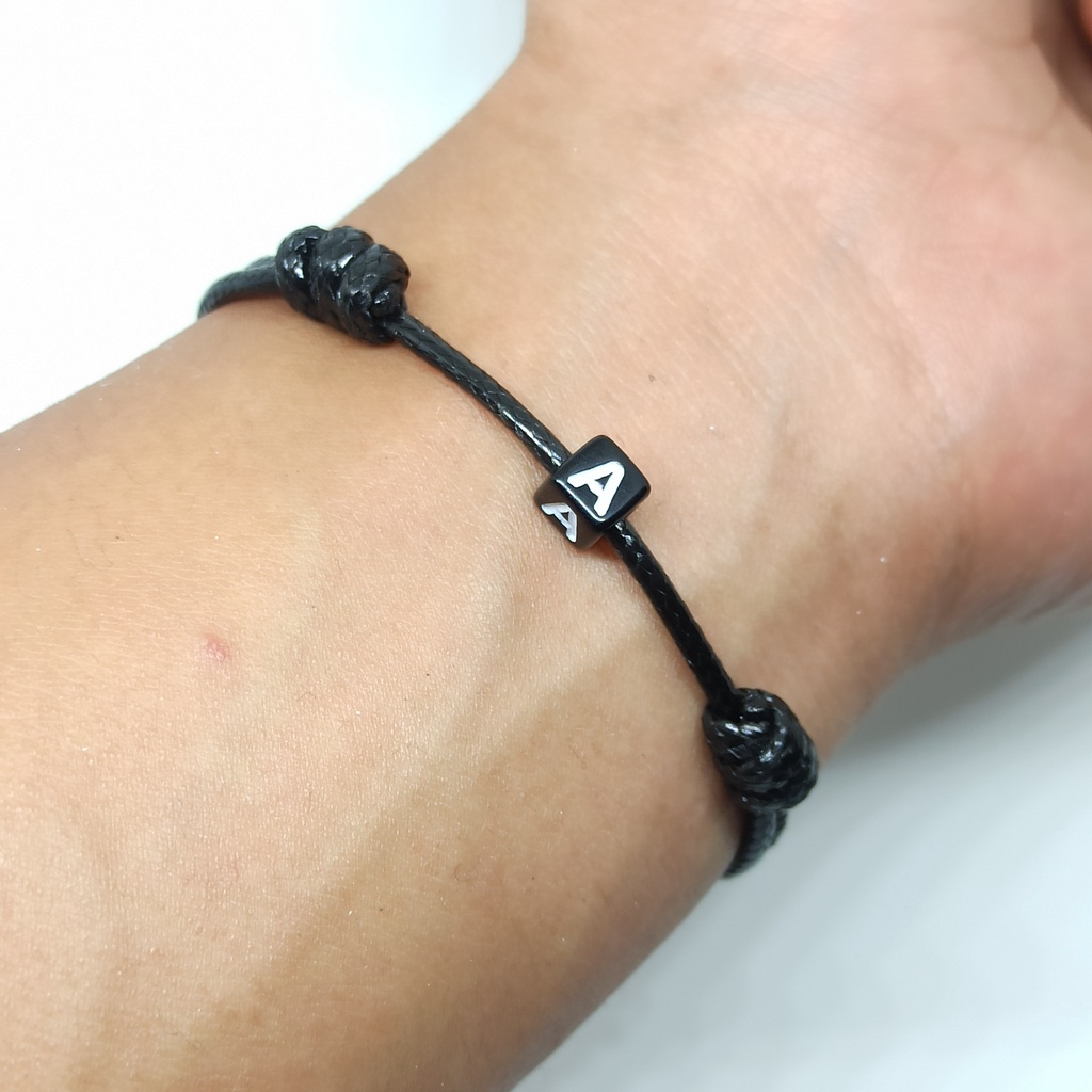 Gelang Inisial Tali Korea / Gelang Tali Inisial Custom Huruf/ Gelang Hitam Polos (HITAM) Gelang Korea