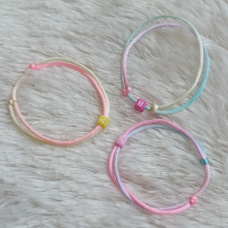 Gelang Inisial tali satin/gelang tali inisial custom huruf /gelang hitam polos dan rainbow