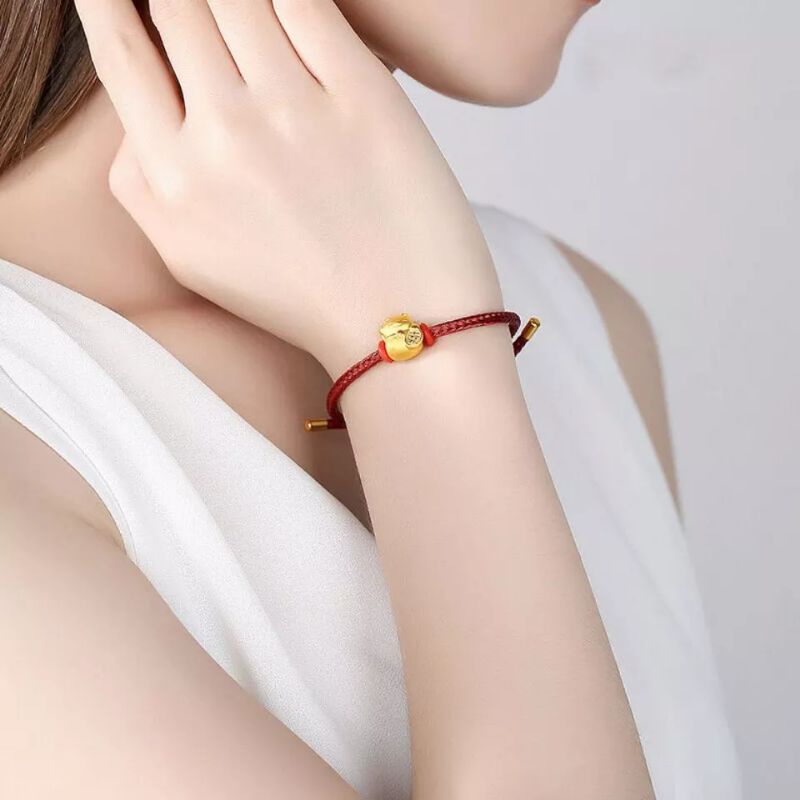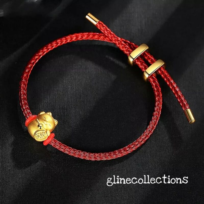 Gelang Keberuntungan Kucing Emas 18k Fengshui Hoki China
