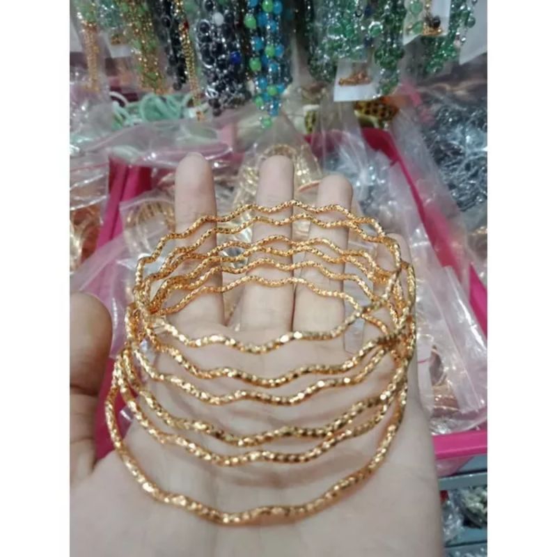 Gelang Keroncong Wanita Titanium Lapis Emas Aksesoris Fashion
